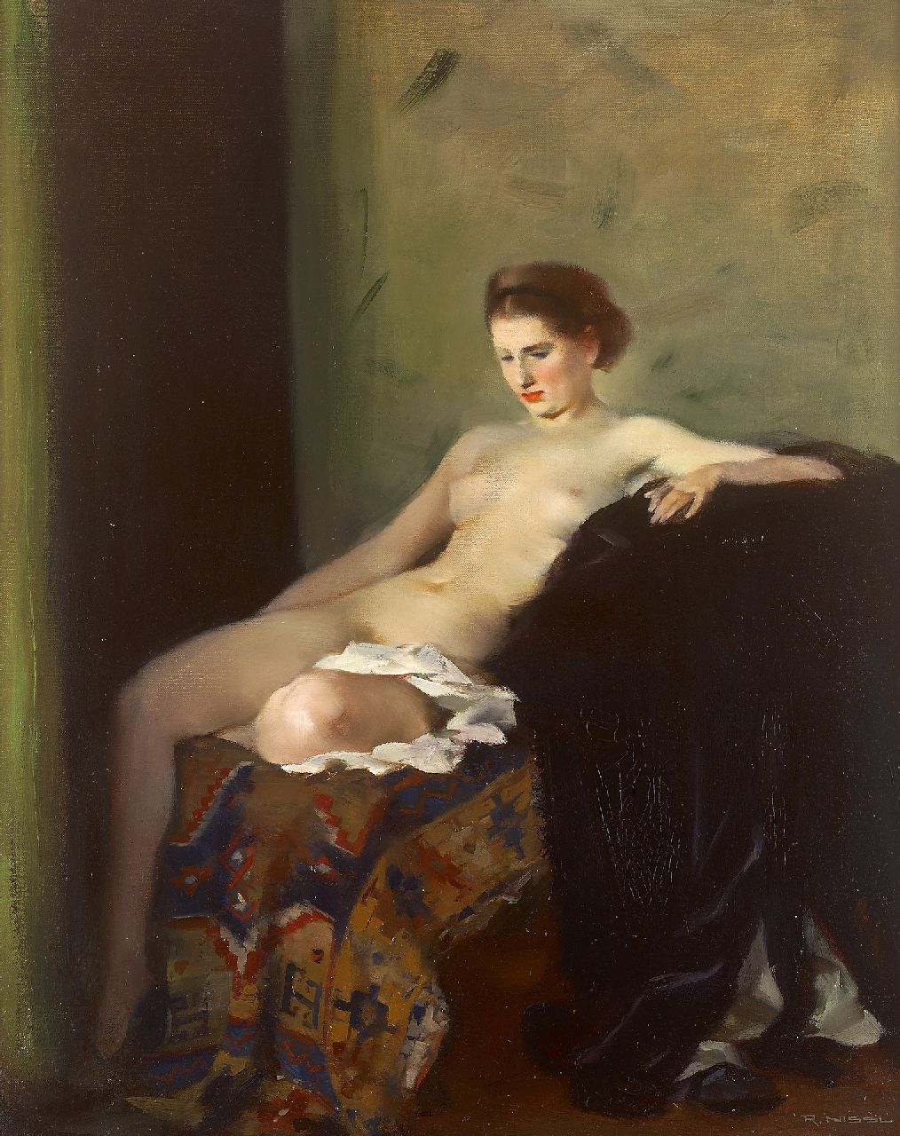 Rudolf Nissl Kunstwerk • Gemälde • zuvor zu verkaufen Ruhender Akt auf persischem Teppich