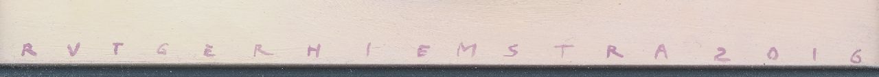 Rutger Hiemstra, geboren in Groningen, studierte an der Kunstakademie seiner Heimatstadt und malt hauptsächlich Landschaften und Stillleben. Hiemstra hält die Groninger Felder mit seinem Malkasten unter freiem Himmel fest. In diesen im Freien gemalten Landschaften betont er oft den bewölkten Himmel. In seinen Stillleben zeigt Hiemstra seine Aufmerksamkeit für die Schönheit des Alltäglichen. Er malt Gemüse, Obst und Tiere in einem realistischen Stil, der oft wie ein Trompe-l'oeil wirkt: eine Banane in einer Brotdose, Quitten in einer Schüssel, Pilze und Zwiebeln auf einem Tisch oder tote Fische und Vögel. In seinem Atelier sammelt Hiemstra alle möglichen Dinge, die er verwenden kann, von Totenköpfen und Vasen bis hin zu Blumen und Muscheln.