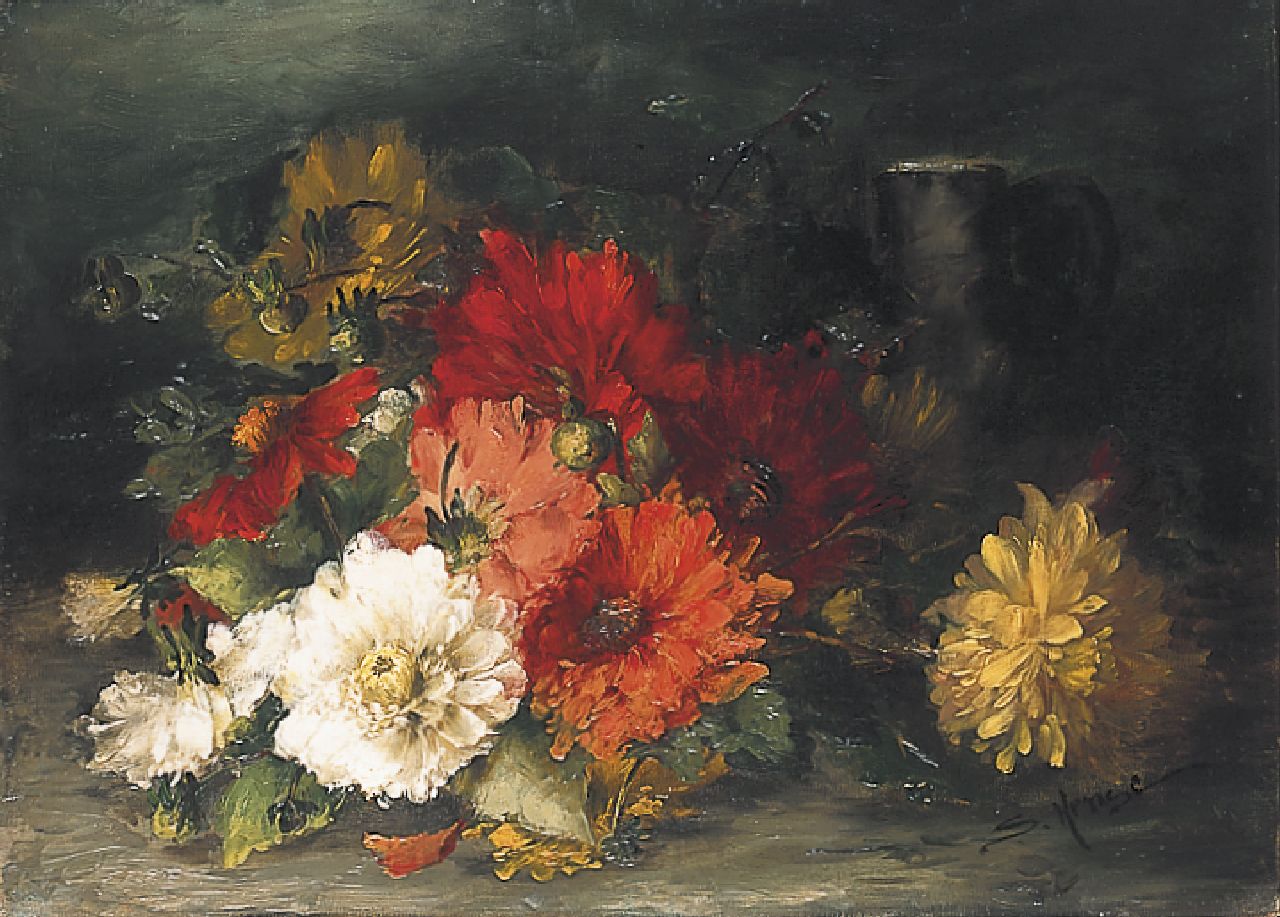 Sara Hense (auch geschrieben als Sara Henze) spezialisierte sich wie ihre berühmte Lehrerin Margaretha Roosenboom auf das Malen von Blumen. Sie führte jedoch eine größere Vielfalt ein: Tulpen, Azaleen, Nelken und Chrysanthemen und viele andere Blumen wurden von ihr dargestellt. Die Arbeit von Sara Hense wurde für die natürliche Anordnung der Blumen und die schönen Farben und das Licht bewundert. Sara Hense wurde 1857 in Zeist geboren und lebte und arbeitete dort die meiste Zeit ihres Lebens. Ihre Ausbildung erhielt sie im Ausland, ab 1879 in Deutschland, Genf bzw. Oxford. In den Niederlanden war es für Frauen noch fast unmöglich, sich zu Künstlerinnen ausbilden zu lassen.