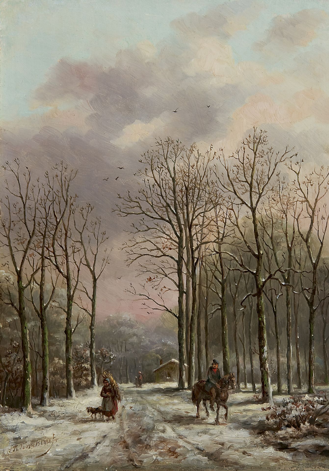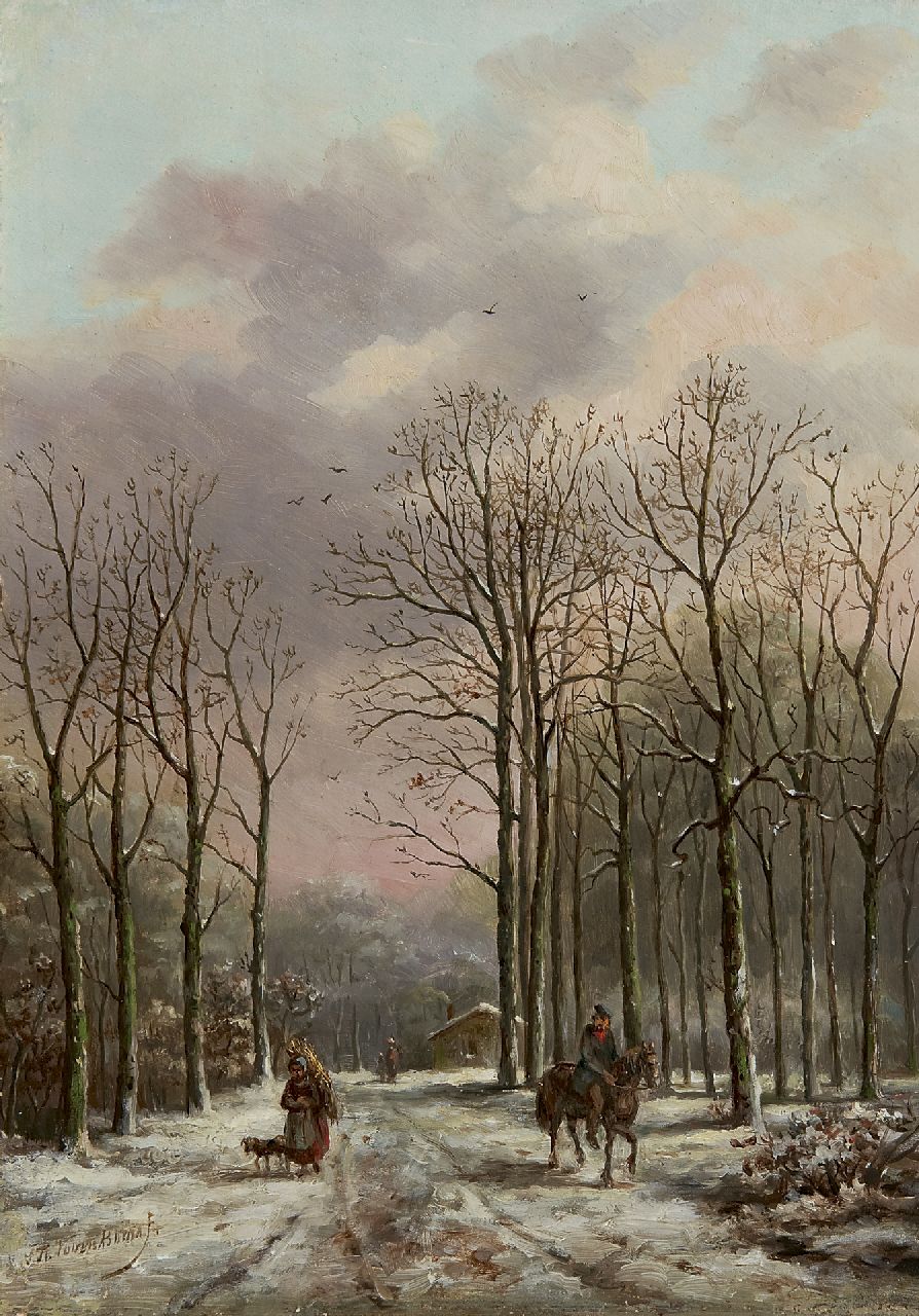 Sebastiaan Theodorus Voorn Boers Kunstwerk • Gemälde • zuvor zu verkaufen A wooded path with figures