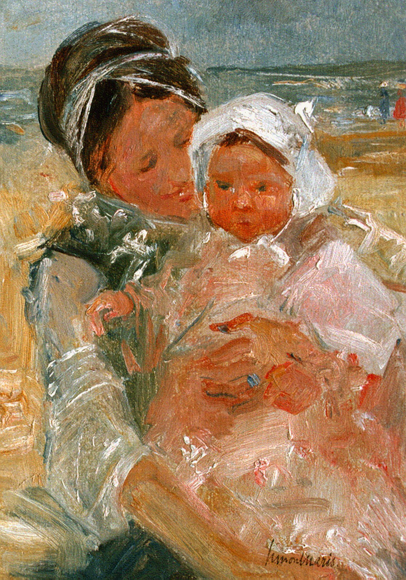 Simon Maris Kunstwerk • Gemälde • zuvor zu verkaufen A mother with baby in the dunes