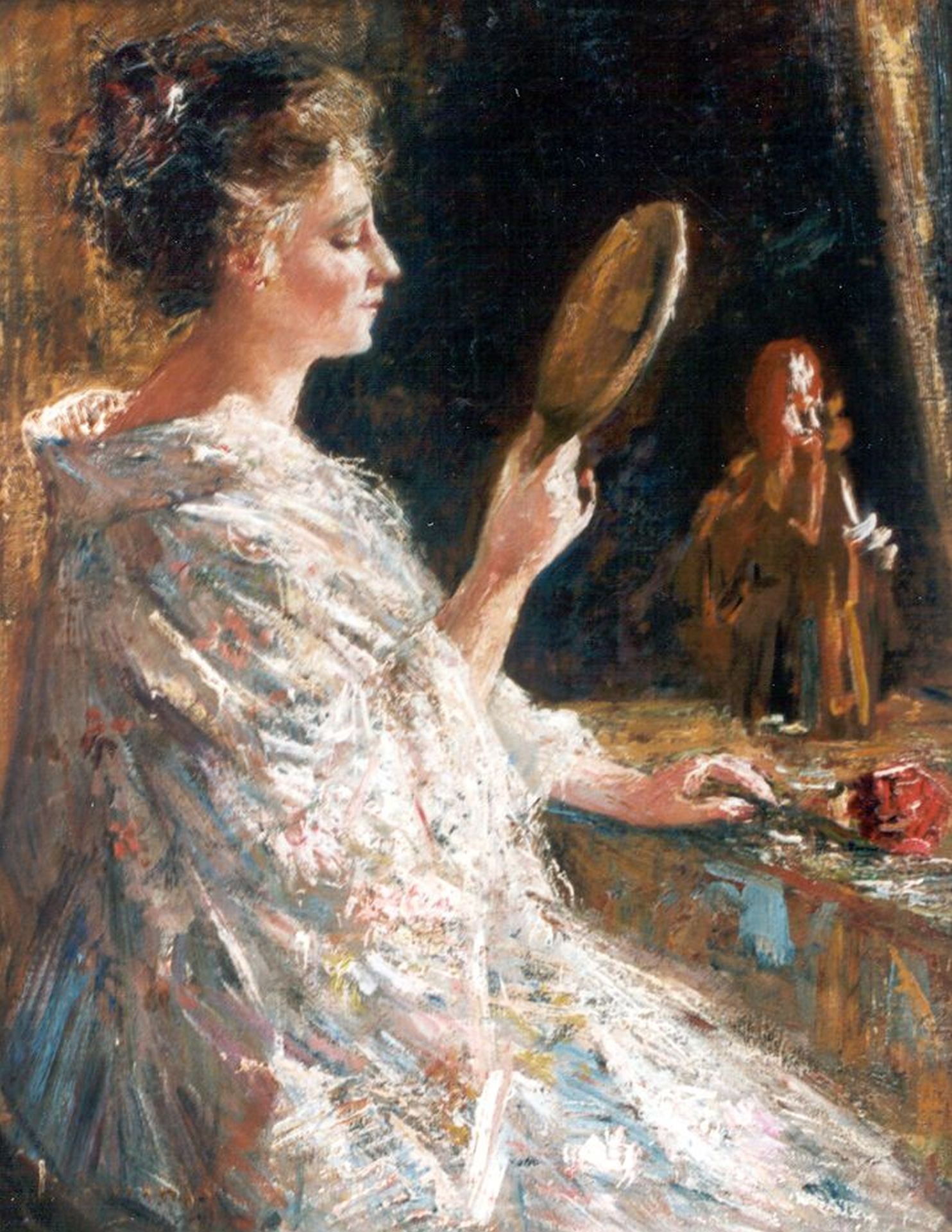 Simon Maris Kunstwerk • Gemälde • zuvor zu verkaufen An elegant lady with a mirror