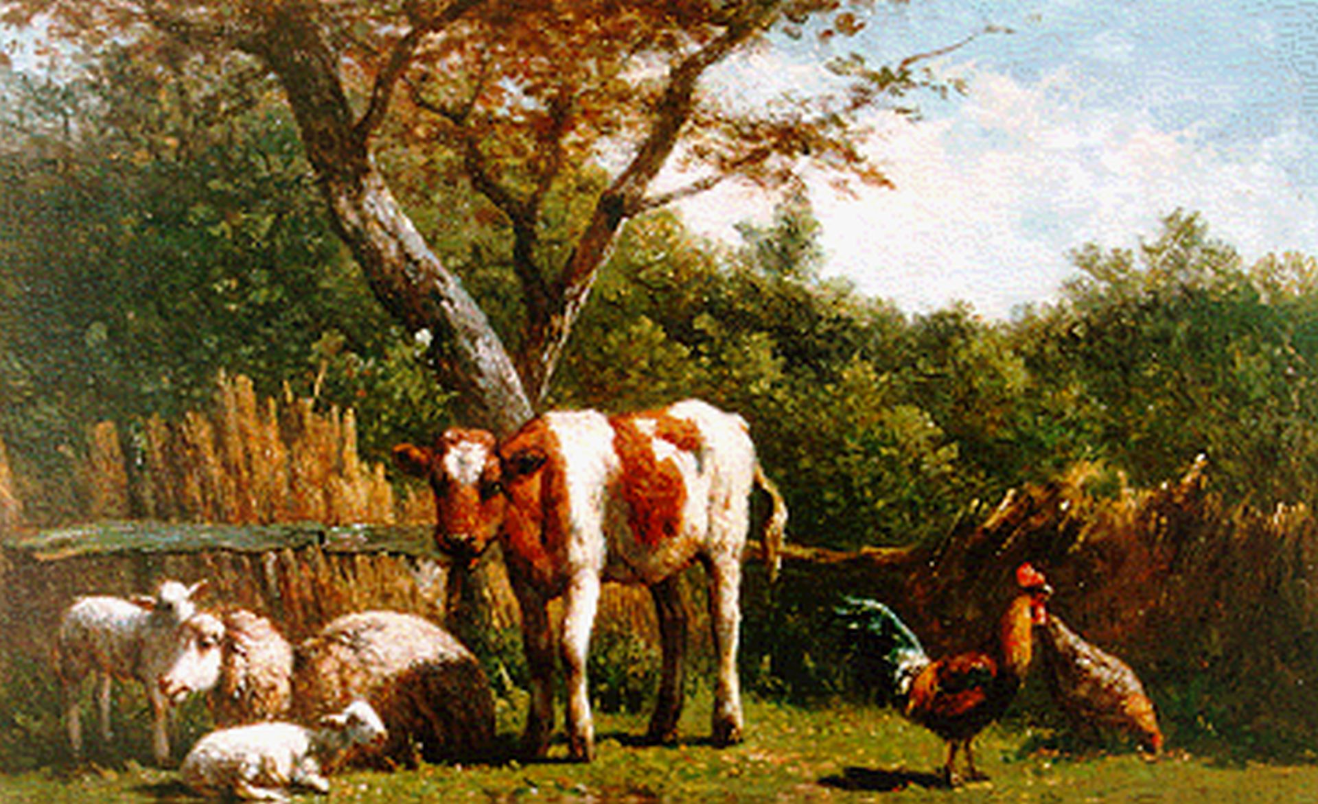 Simon van den Berg begann seine Karriere als Landwirtskind relativ spät. Erst nach einer zweijährigen Ausbildung bei der berühmten P.G. van Os entwickelte er sich in den vierziger Jahren des 19. Jahrhunderts zu einem der bedeutendsten Maler der niederländischen Romantik. Manchmal schmückte er auch Landschaften von Zeitgenossen. 1854 wurde der besonders vielseitige Maler zum Direktor des Mauritshuis in Den Haag ernannt.