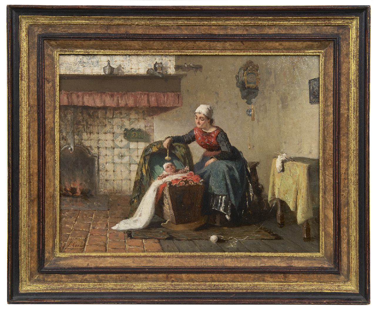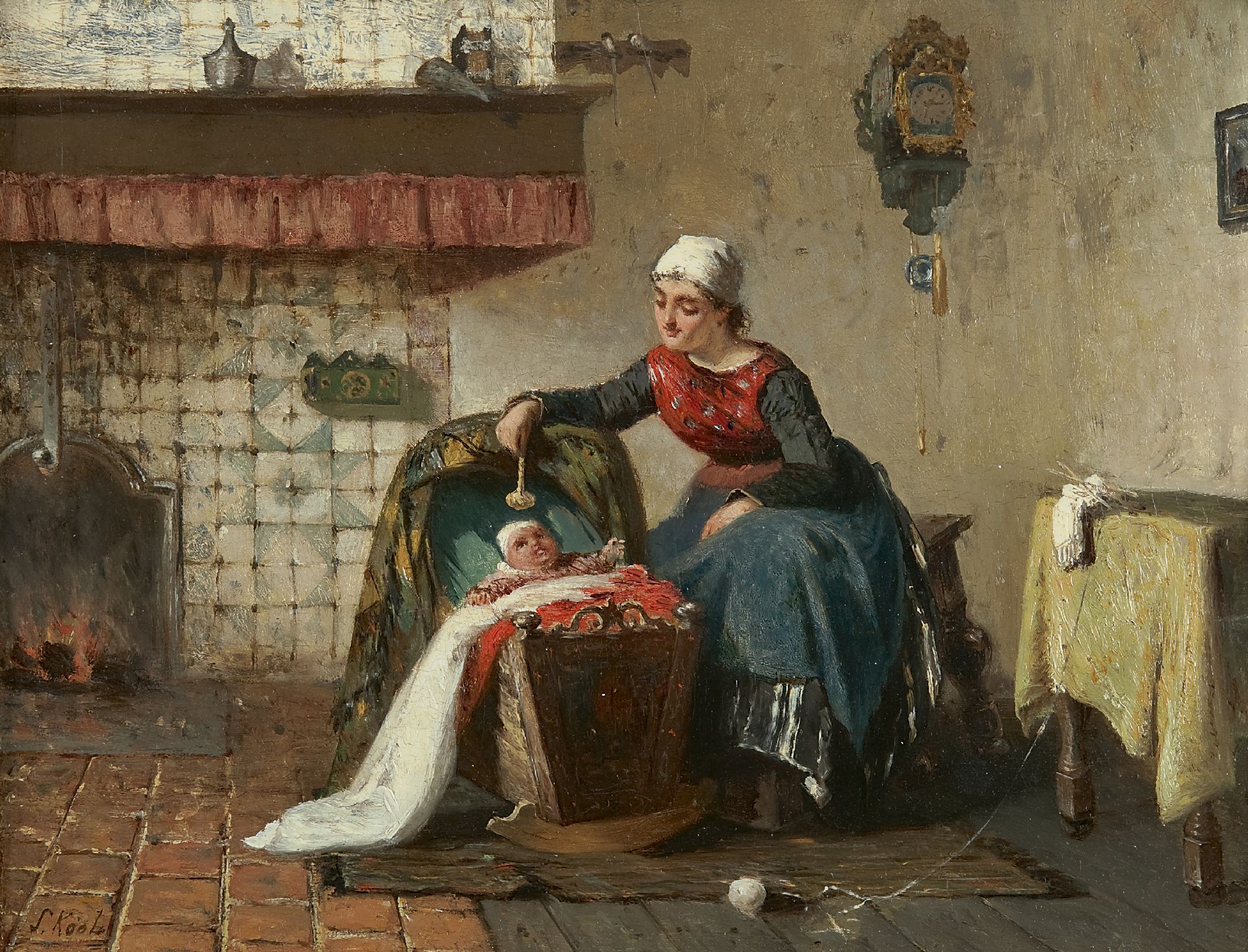 Sipke Kool Kunstwerk • Gemälde • zu verkaufen Mutter und Kind am Ofenfeuer