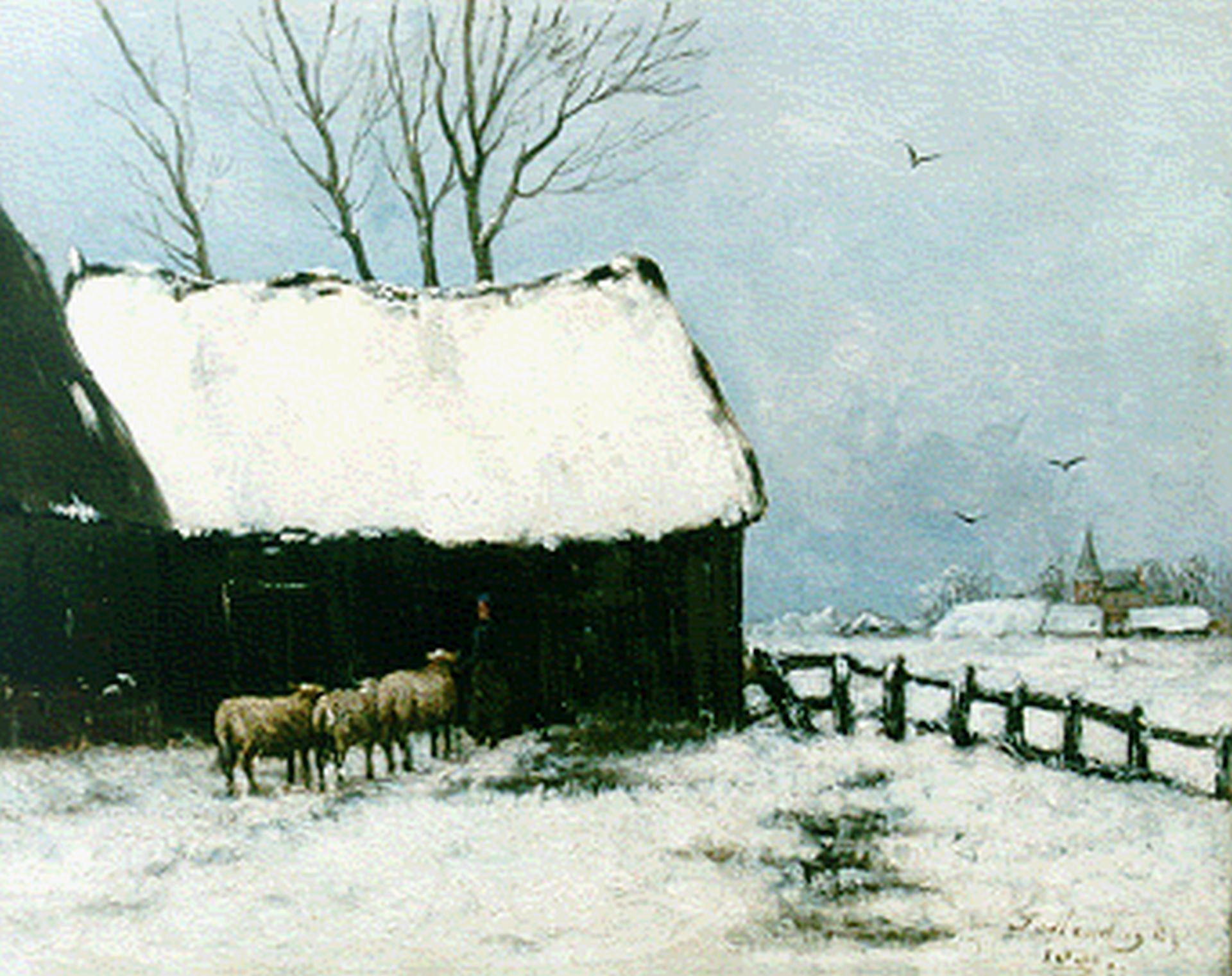 Taco Mesdag Kunstwerk • Gemälde • zuvor zu verkaufen A sheep fold in winter