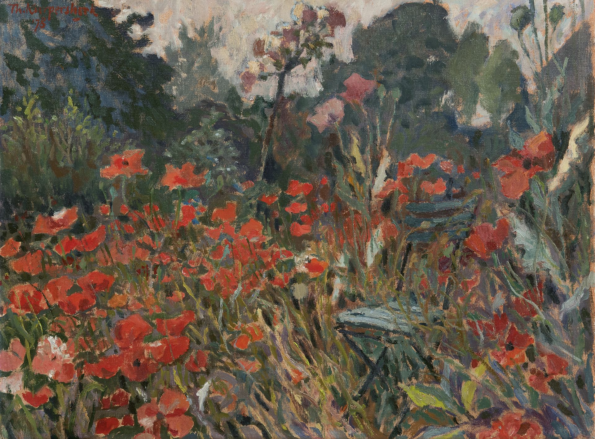 Theo Kurpershoek Kunstwerk • Gemälde • zuvor zu verkaufen Garten mit Stuhl