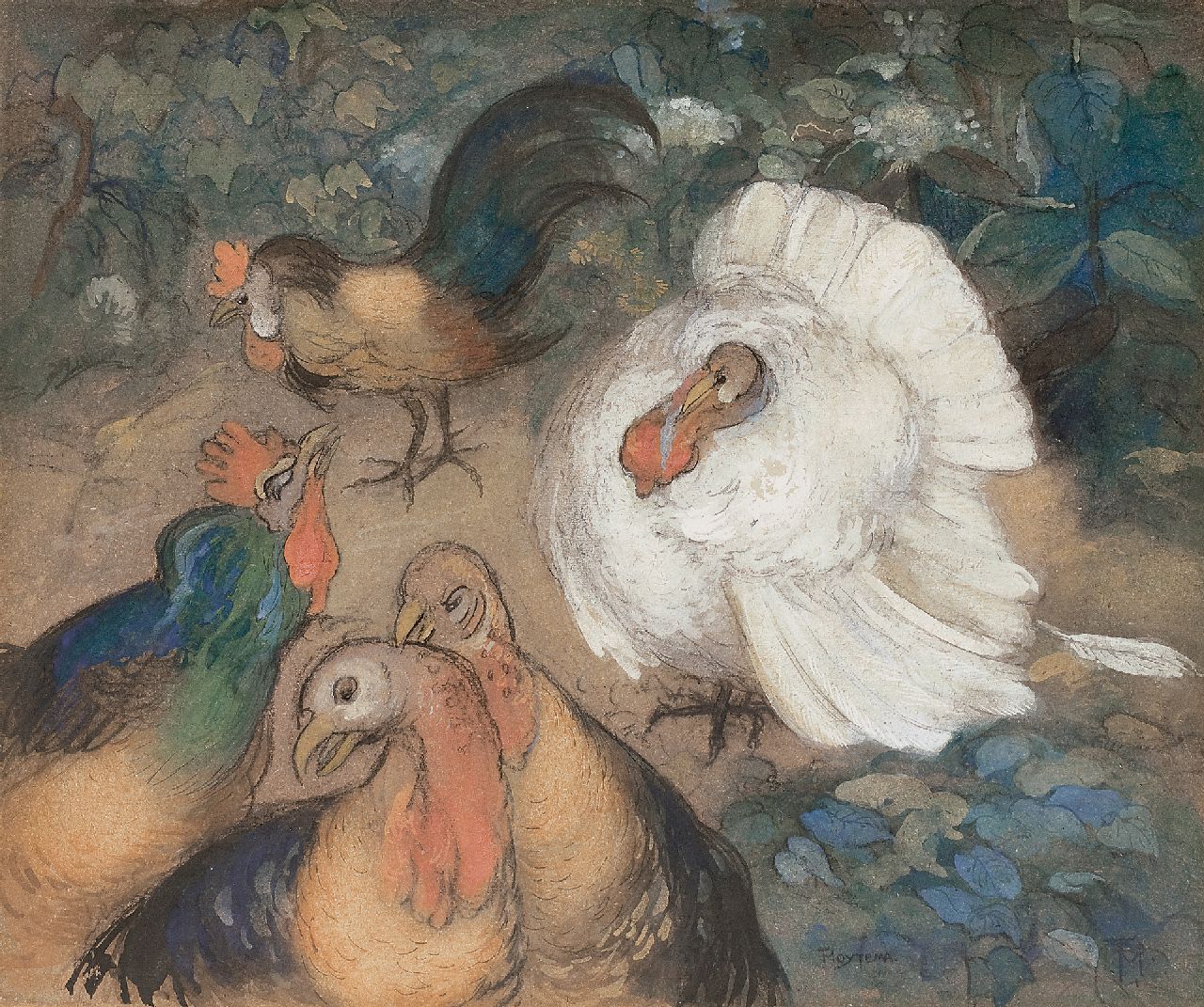 Theo van Hoytema Kunstwerk • Aquarell • Zeichnung • zu verkaufen Federvieh