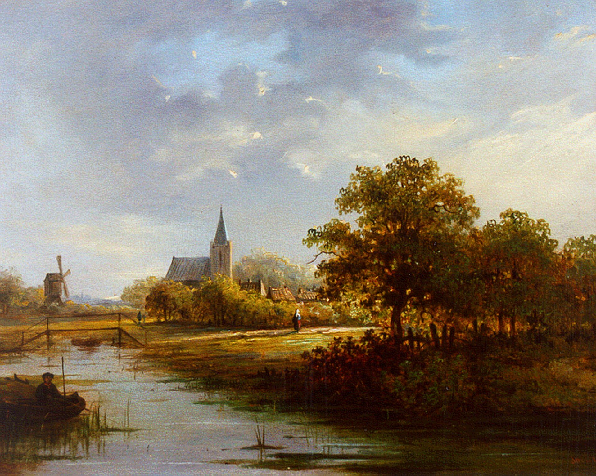 Theodoor Soeterik Kunstwerk • Gemälde • zuvor zu verkaufen Angler in a summer landscape
