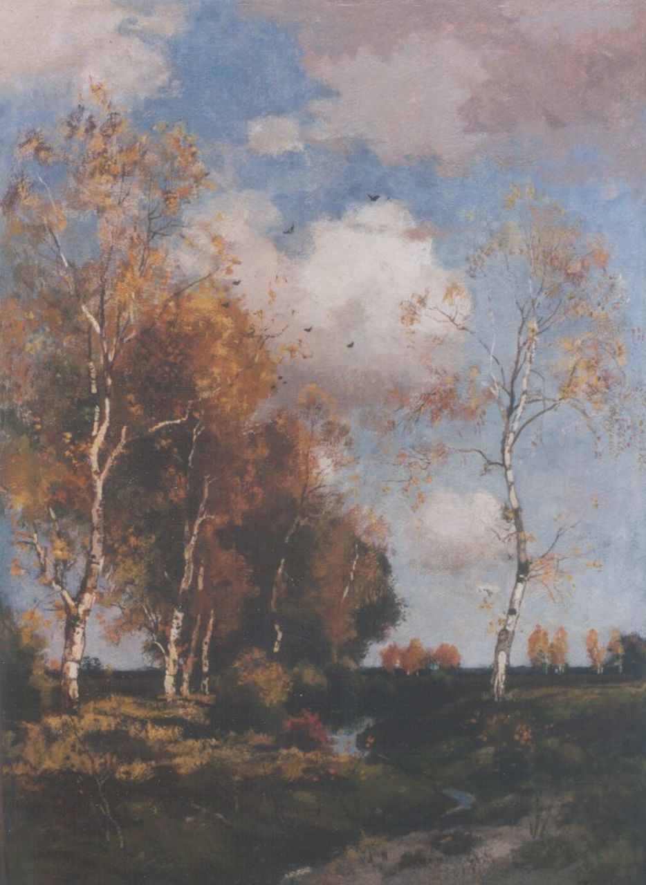 Théophile de Bock | Birken bei einem kleinen Sumpf, Öl auf Holz, 46,4 x 37,6 cm, Unterzeichnet u.r.