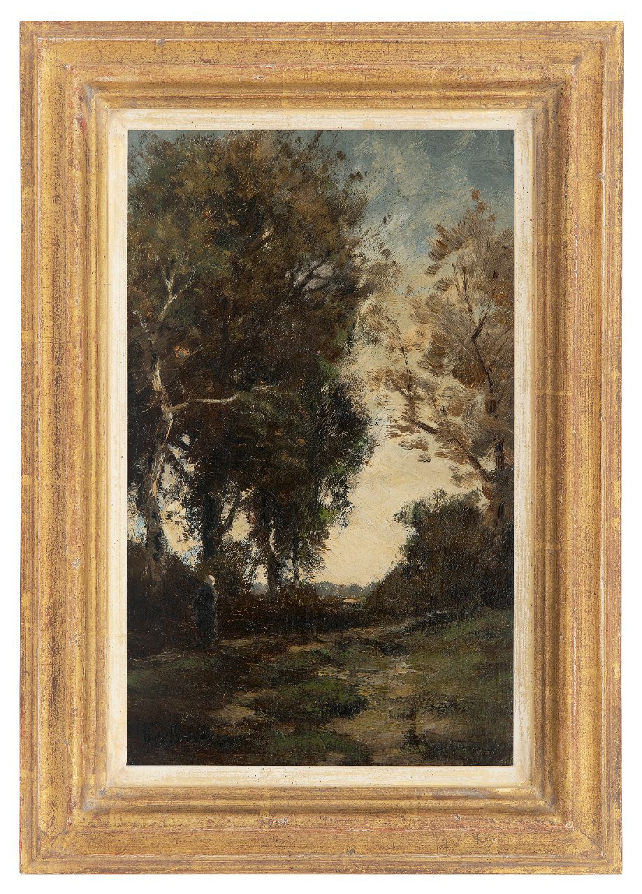 Théophile de Bock Kunstwerk • Gemälde • zuvor zu verkaufen Bäuerin auf einem Waldweg