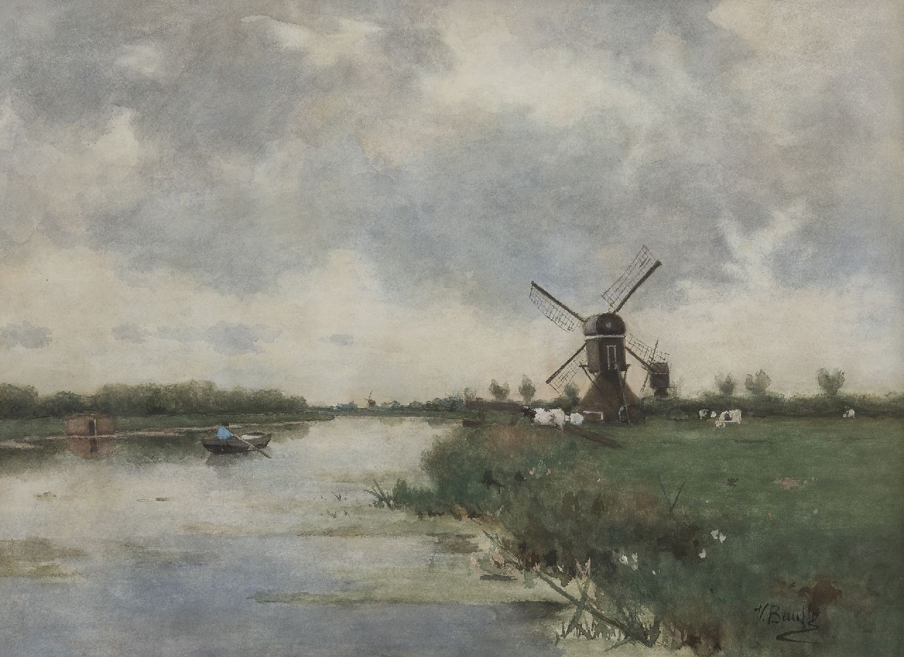 Victor Bauffe | Windmühle in einer Polderlandschaft, Aquarell auf Papier, 17,7 x 25,5 cm, Unterzeichnet u.l.