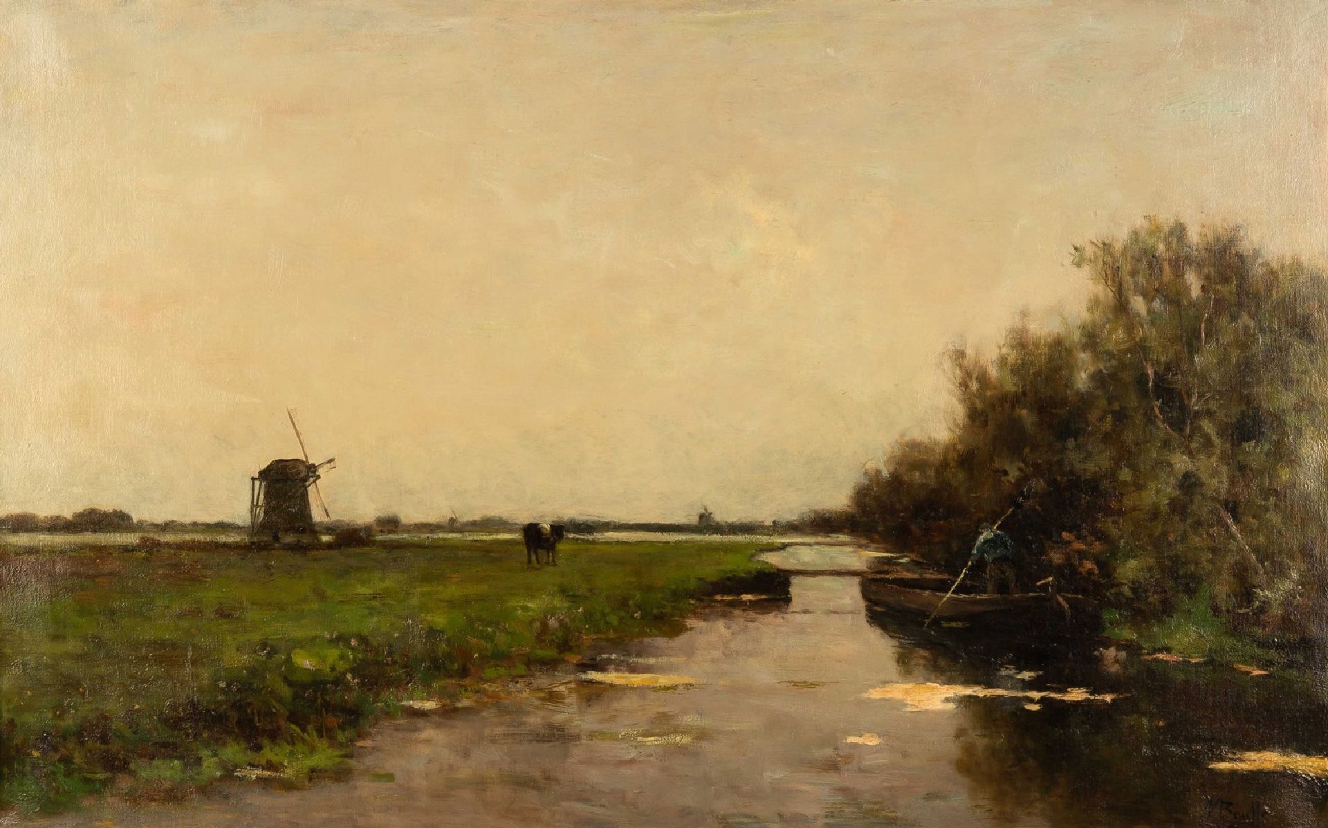 Victor Bauffe Kunstwerk • Gemälde • zuvor zu verkaufen A farmer in a barge in a polder landscape