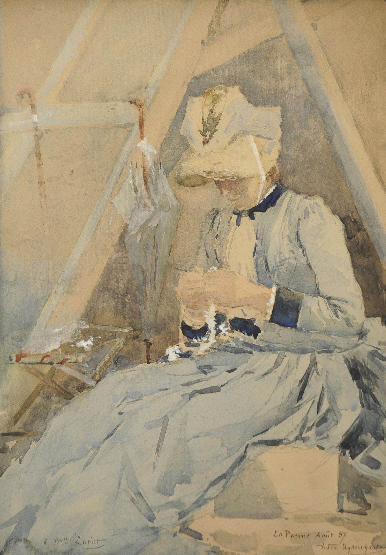 Victor Uytterschaut Kunstwerk • Aquarell • Zeichnung • zuvor zu verkaufen Am Strand von De Panne