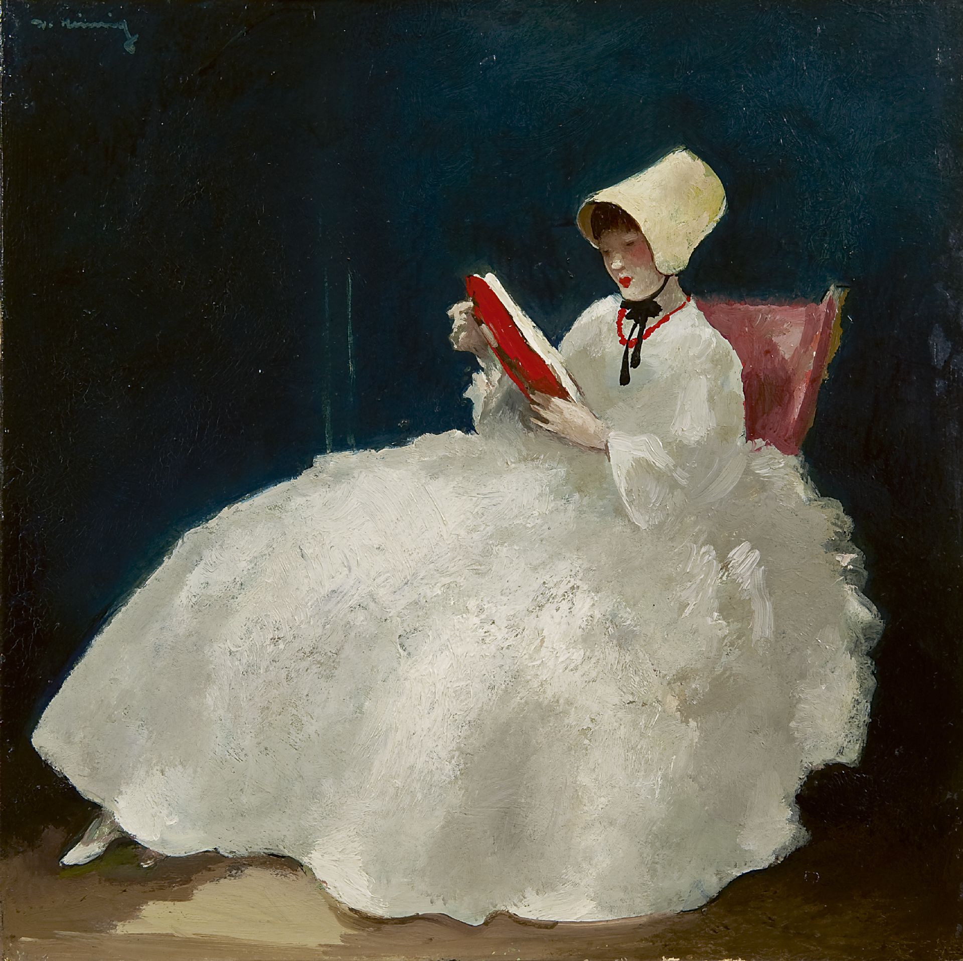 Walter Heimig Kunstwerk • Gemälde • zuvor zu verkaufen A girl reading with bonnet