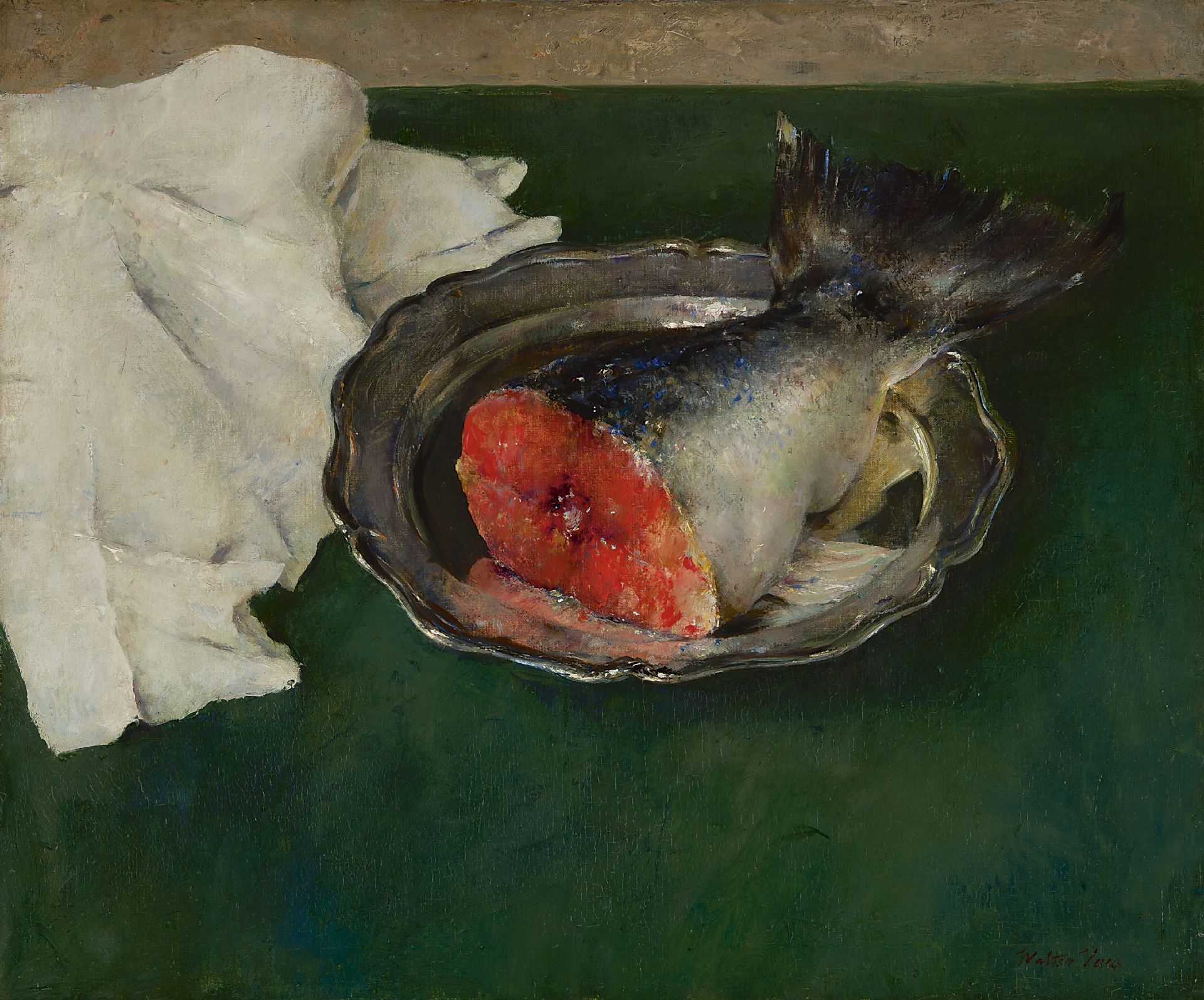 Walter Vaes Kunstwerk • Gemälde • zuvor zu verkaufen Lachsscheibe auf einem Zinnteller