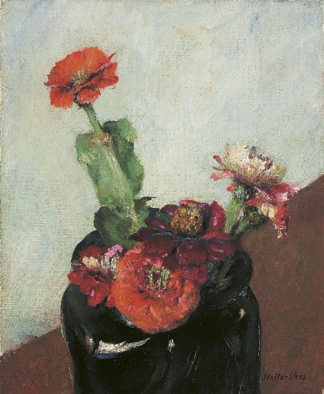 Walter Vaes Kunstwerk • Gemälde • zuvor zu verkaufen Vase mit Zinnien