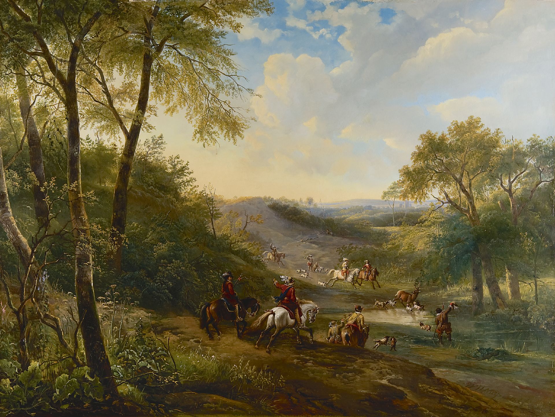 Wijnand Nuijen Kunstwerk • Gemälde • zuvor zu verkaufen A deer hunt in a valley
