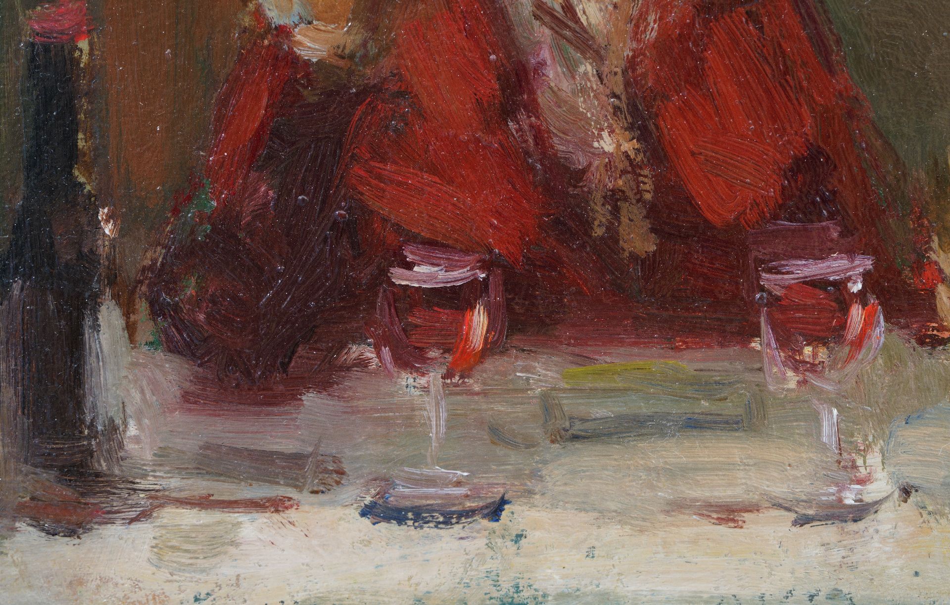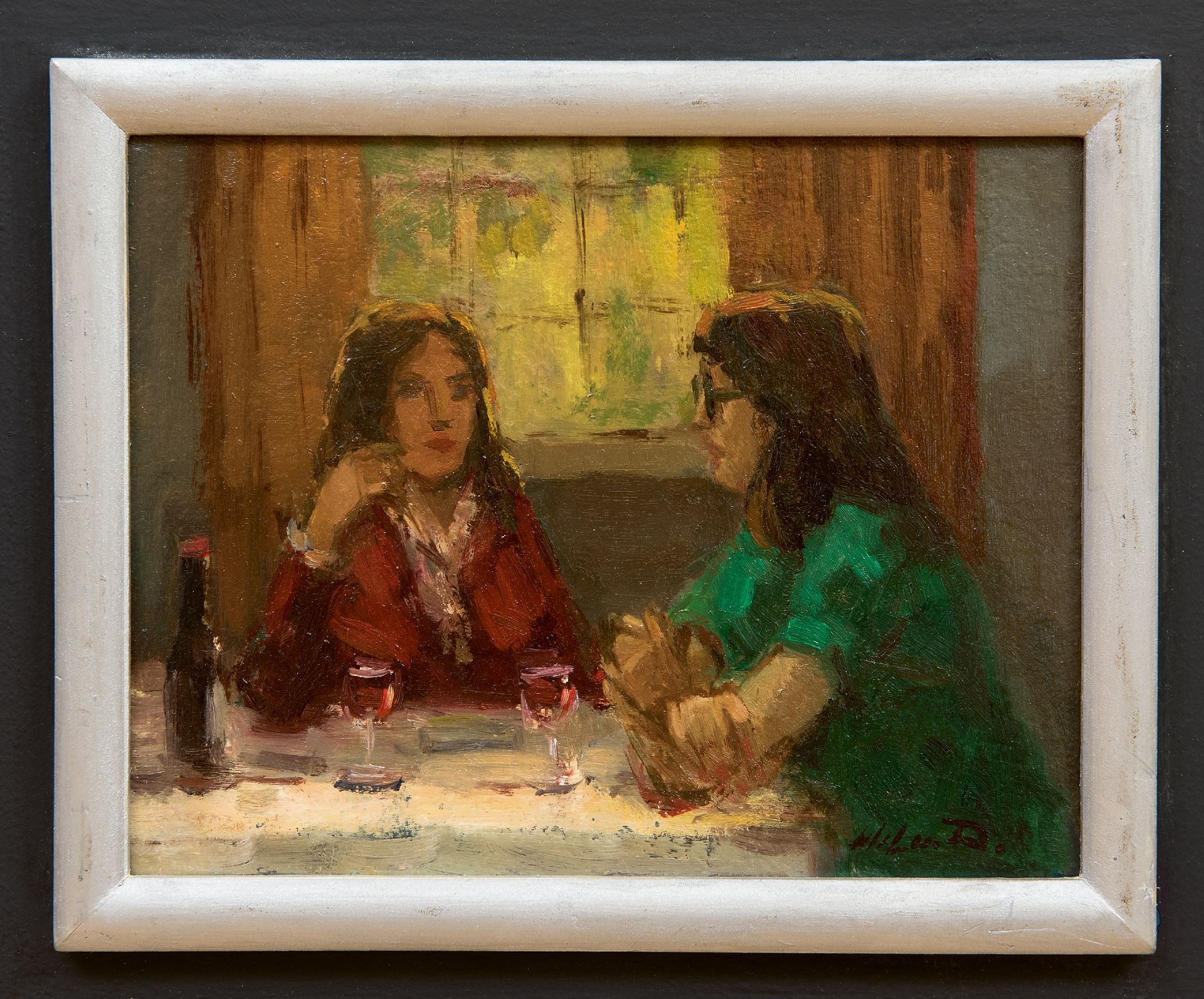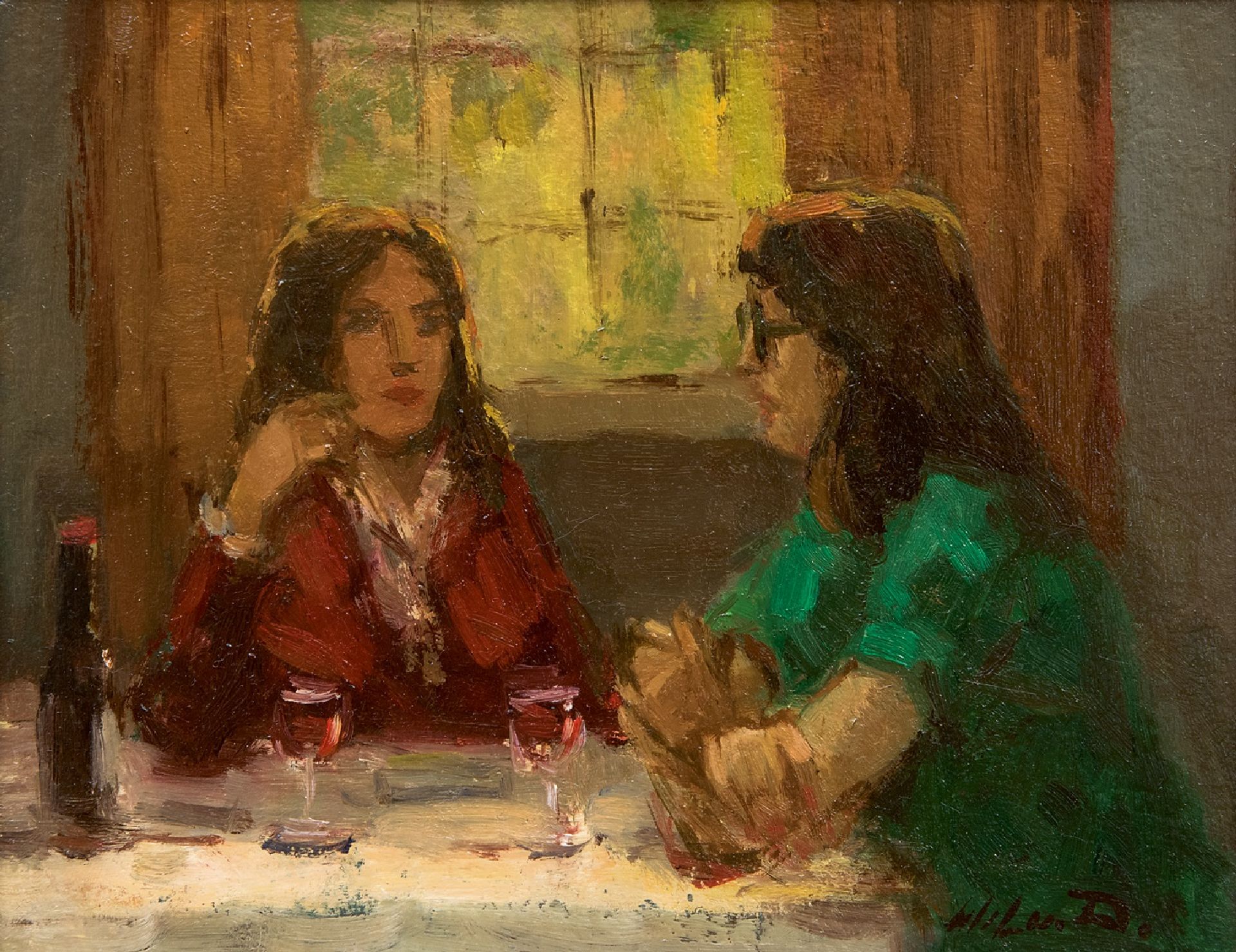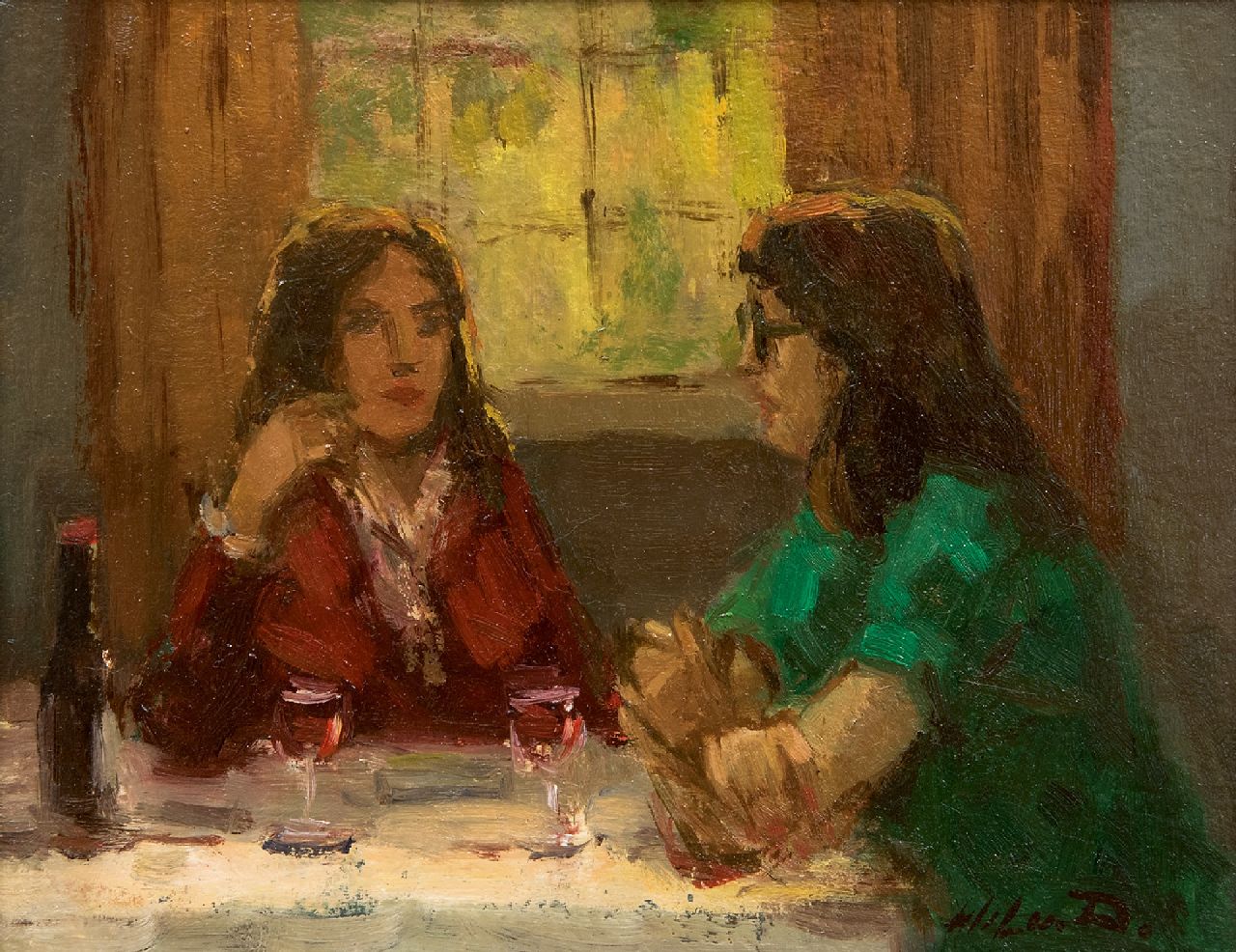 Wil van Dinther Kunstwerk • Gemälde • zu verkaufen Gespräch bei einem Glas Wein