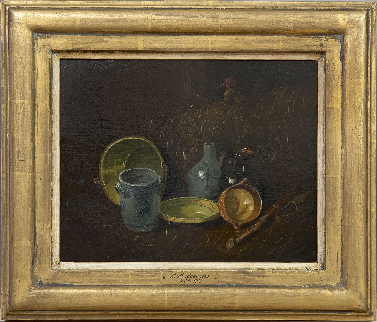 Lammers W.A.  | Wilhelm Albertus Lammers | Gemälde zum Verkauf angeboten | Stilleben von Küchengeräten, Öl auf Holz 22,4 x 28,3 cm