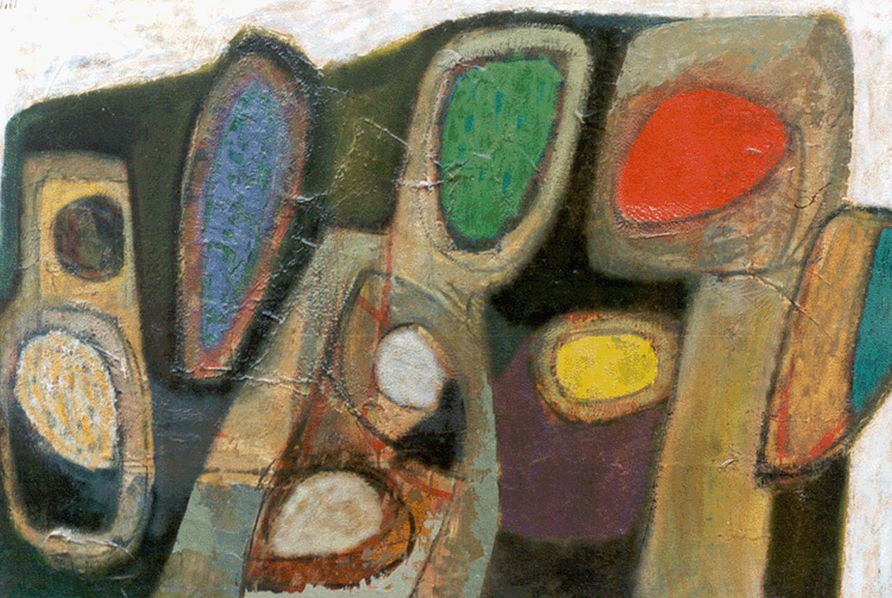 Der Haager Maler Will Leewens, Schwager von Jan Roëde, stellte in den Nachkriegsjahren zusammen mit Willy und Frans Boers, Roëde, Hussem, Ouborg und Nanninga mit der experimentellen Künstlergruppe 'Vrij Beelden' (1947-1953) aus. Wie die Mitglieder der CoBrA-Gruppe lehnen sie traditionelle, figurative Kunst ab. In den späten 1950er Jahren trat Leewens kurzzeitig den Informelen bei. Er experimentiert mit neuen Materialien, bleibt aber seiner eigenen Designsprache treu - Rechtecken und Quadraten. In den folgenden Jahren dominierten runde Formen und Farben in seiner Arbeit, die er nebeneinander arrangierte.