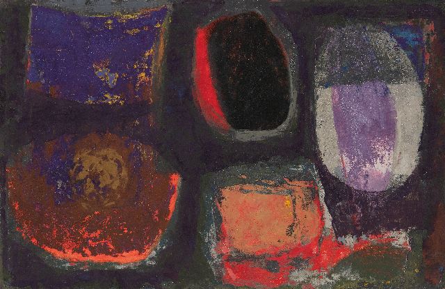 Der Haager Maler Will Leewens, Schwager von Jan Roëde, stellte in den Nachkriegsjahren zusammen mit Willy und Frans Boers, Roëde, Hussem, Ouborg und Nanninga mit der experimentellen Künstlergruppe 'Vrij Beelden' (1947-1953) aus. Wie die Mitglieder der CoBrA-Gruppe lehnen sie traditionelle, figurative Kunst ab. In den späten 1950er Jahren trat Leewens kurzzeitig den Informelen bei. Er experimentiert mit neuen Materialien, bleibt aber seiner eigenen Designsprache treu - Rechtecken und Quadraten. In den folgenden Jahren dominierten runde Formen und Farben in seiner Arbeit, die er nebeneinander arrangierte.