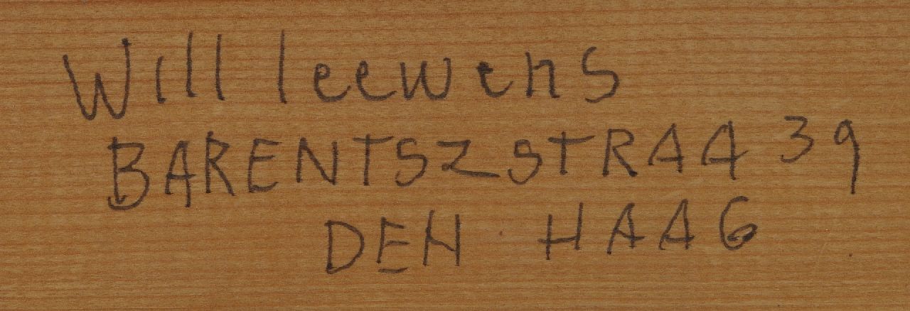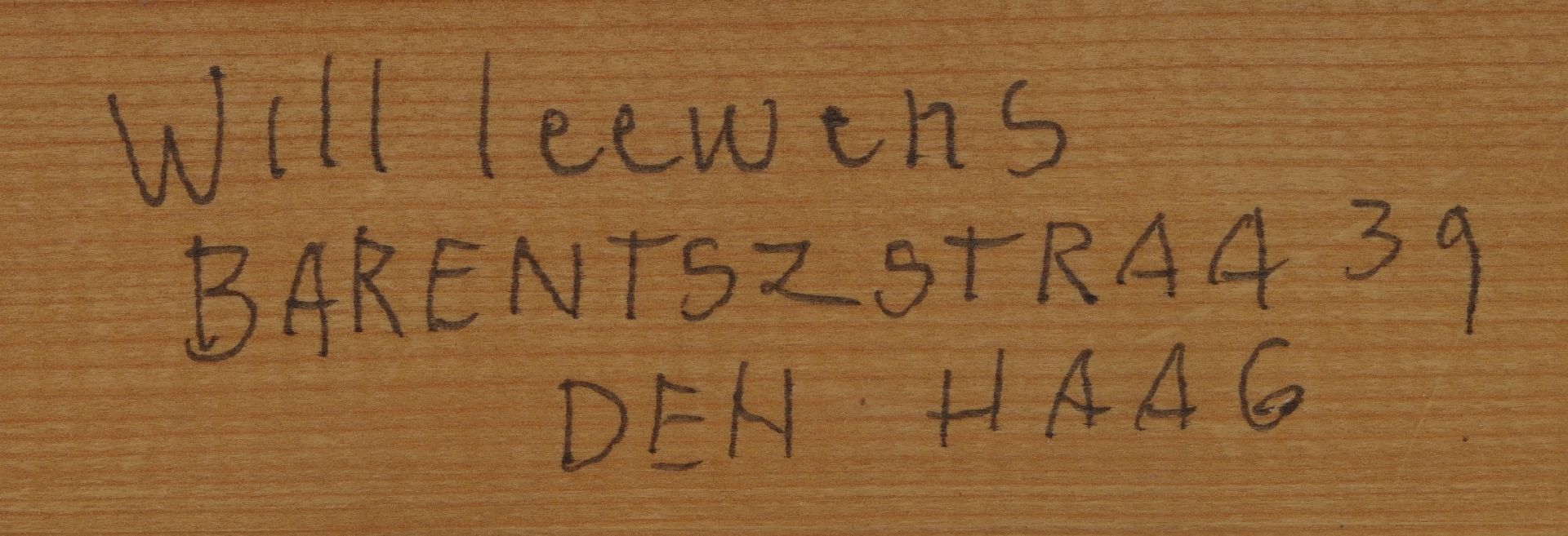 Der Haager Maler Will Leewens, Schwager von Jan Roëde, stellte in den Nachkriegsjahren zusammen mit Willy und Frans Boers, Roëde, Hussem, Ouborg und Nanninga mit der experimentellen Künstlergruppe 'Vrij Beelden' (1947-1953) aus. Wie die Mitglieder der CoBrA-Gruppe lehnen sie traditionelle, figurative Kunst ab. In den späten 1950er Jahren trat Leewens kurzzeitig den Informelen bei. Er experimentiert mit neuen Materialien, bleibt aber seiner eigenen Designsprache treu - Rechtecken und Quadraten. In den folgenden Jahren dominierten runde Formen und Farben in seiner Arbeit, die er nebeneinander arrangierte.
