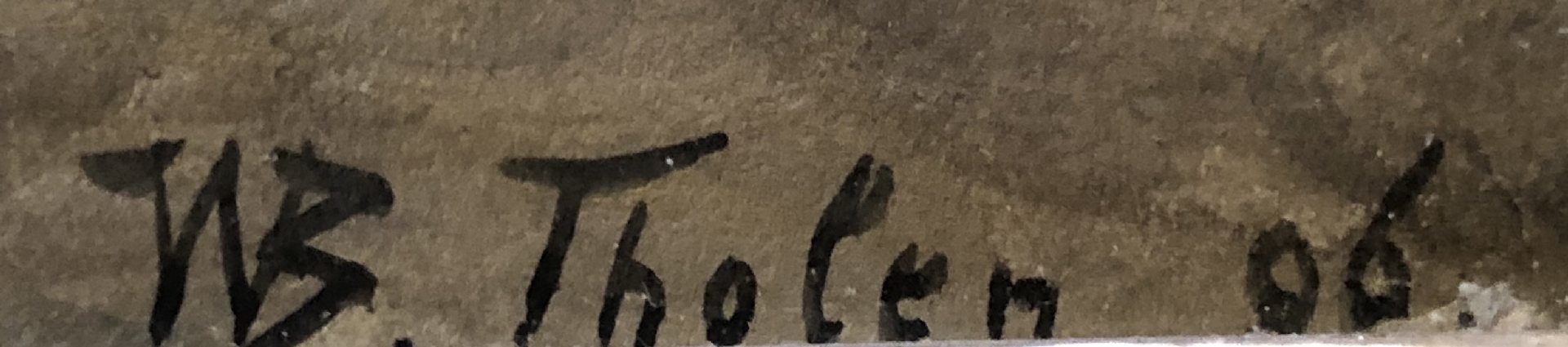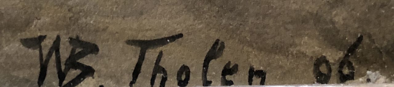Willem Bastiaan Tholen war unter anderem Schüler von Paul Joseph Constantin Gabriel, dessen Einfluss in den frühen Landschaften sichtbar wird, die er in der Nähe von Giethoorn und Kampen geschaffen hat. Danach malte er hauptsächlich Porträts, Wald-, Stadt- und Strandansichten in einem lockeren Malstil und einer farbenfrohen, klaren Palette. Nach 1895 wanderte er mit seinem Lemsteraak 'Eudia' über die Gewässer Zuiderzee, Zeeland und die niederländischen Flüsse. Aus dieser Zeit stammen zahlreiche Hafen- und Wasserblicke.