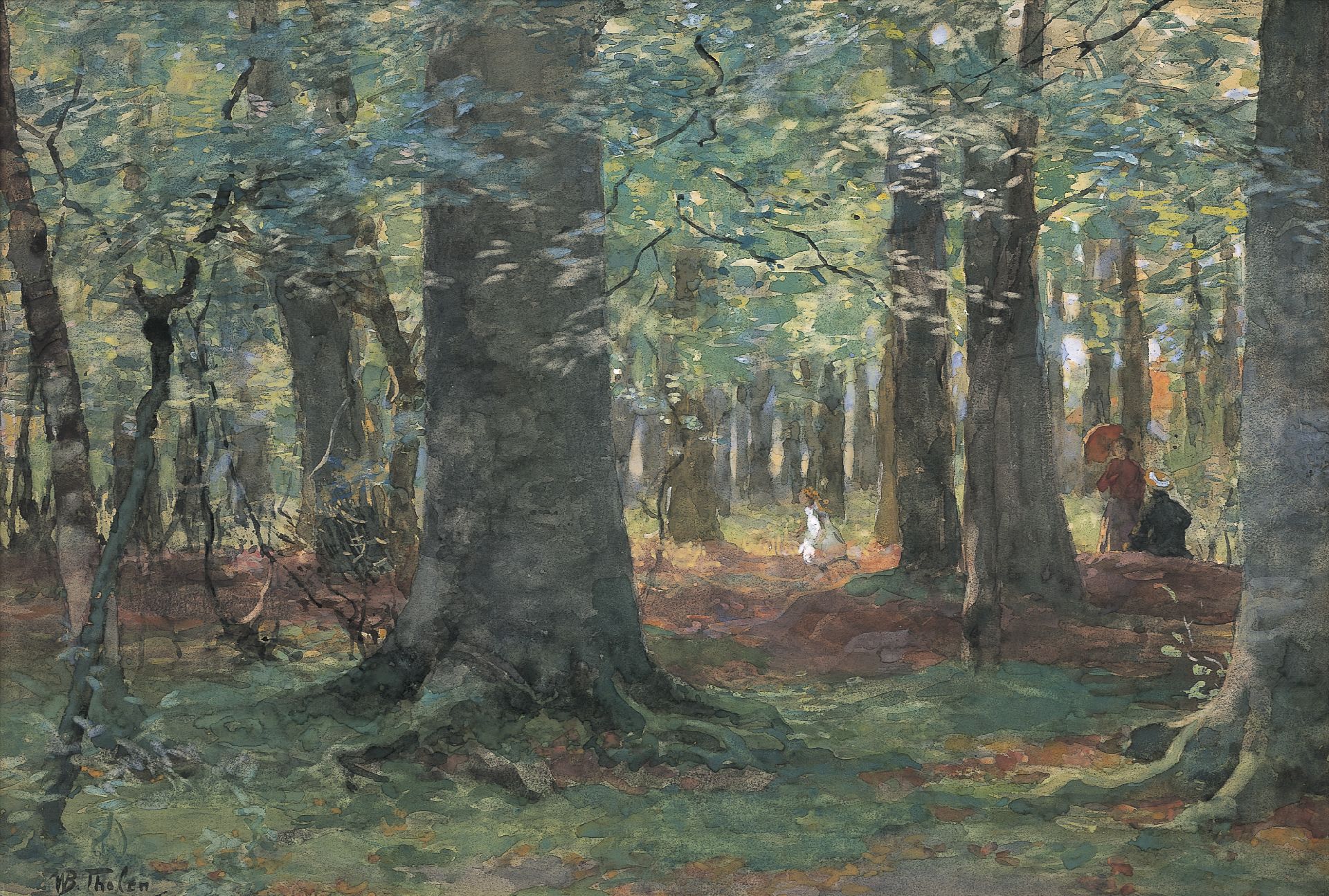 Willem Bastiaan Tholen Kunstwerk • Aquarell • Zeichnung • zuvor zu verkaufen Figures in a forest landscape