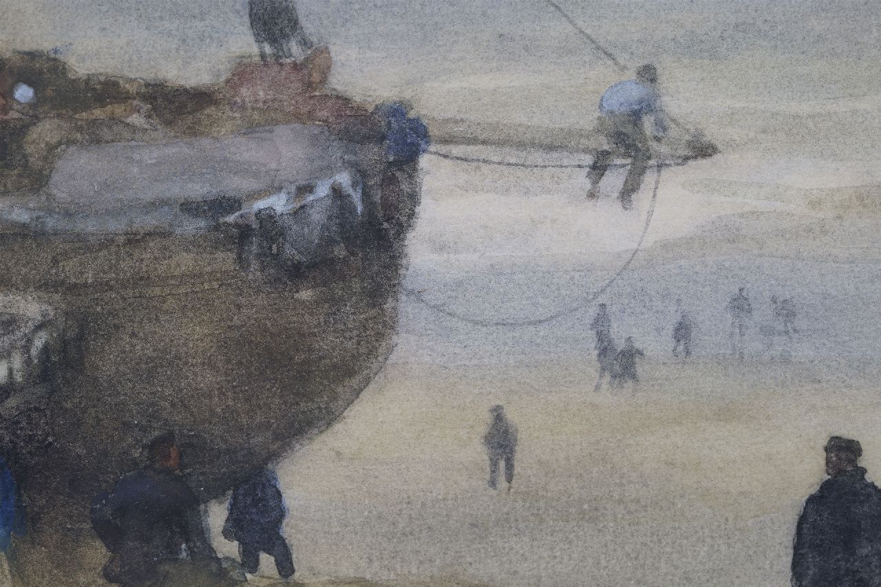 Willem Bastiaan Tholen | Fischer und 'Bomschiffe' am Strand von Scheveningen, Aquarell auf Papier, 37,4 x 53,4 cm, Unterzeichnet l.u.
