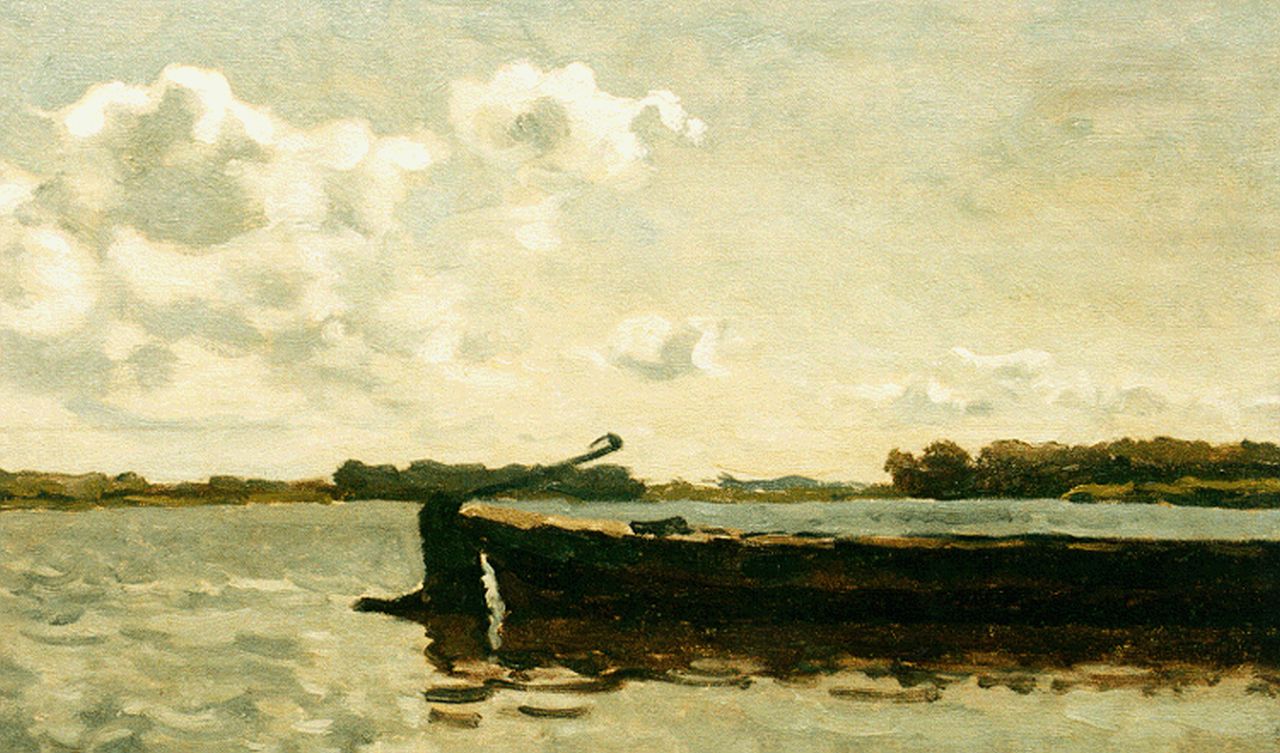 Willem Bastiaan Tholen Kunstwerk • Gemälde • zuvor zu verkaufen A moored flatboat