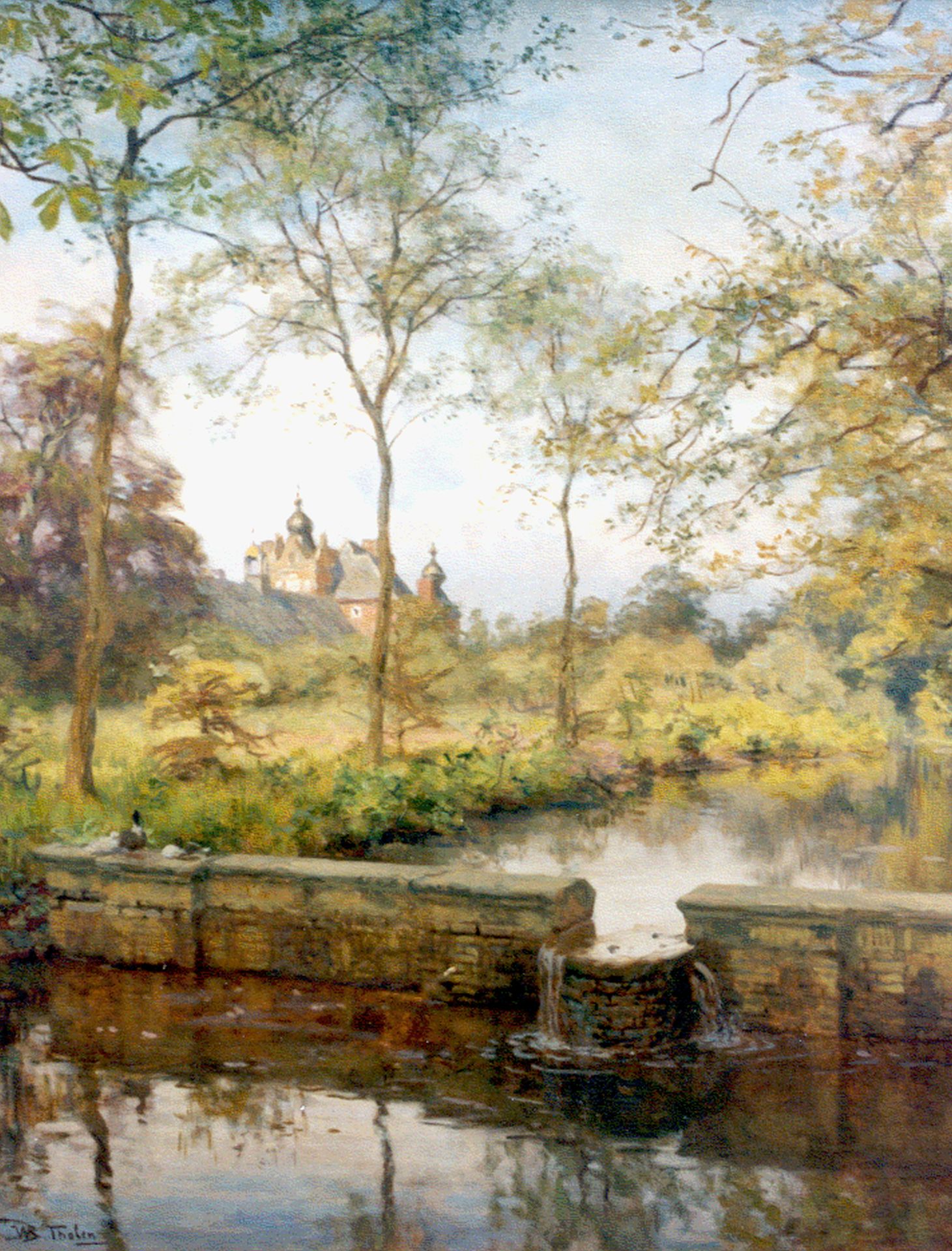 Willem Bastiaan Tholen Kunstwerk • Gemälde • zuvor zu verkaufen A stream, with 'Huize Cannenburgh' in the distance