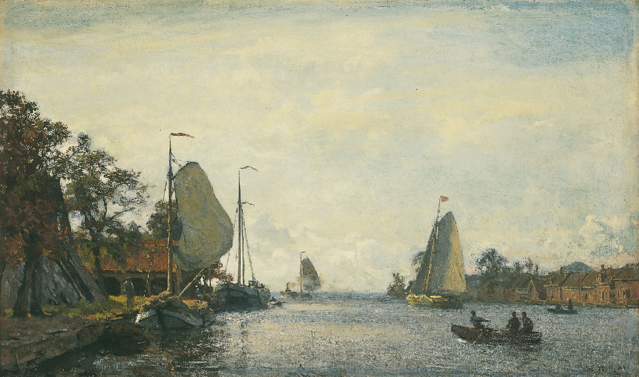 Willem Bastiaan Tholen Kunstwerk • Gemälde • zuvor zu verkaufen A summer landscape with sailing vessels