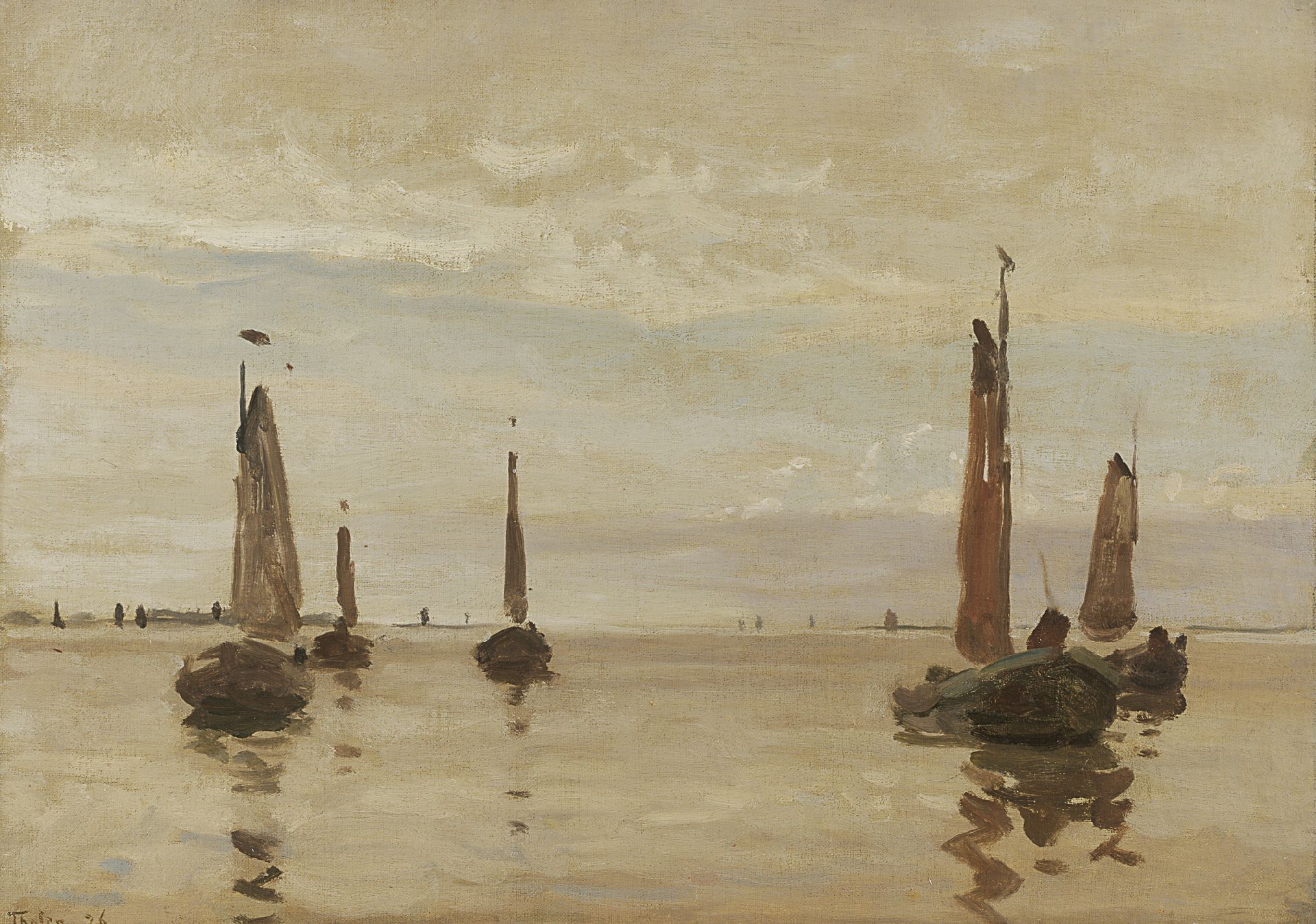 Willem Bastiaan Tholen | Segelschiffe auf der Zuiderzee, Öl auf Leinwand auf Holz, 31,9 x 52,0 cm, Unterzeichnet u.r. und datiert '26