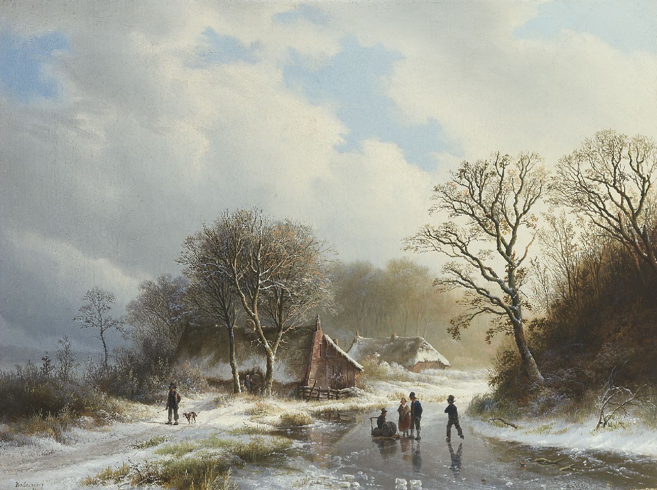 Willem Bodeman Kunstwerk • Gemälde • zuvor zu verkaufen A winter landscape with skaters