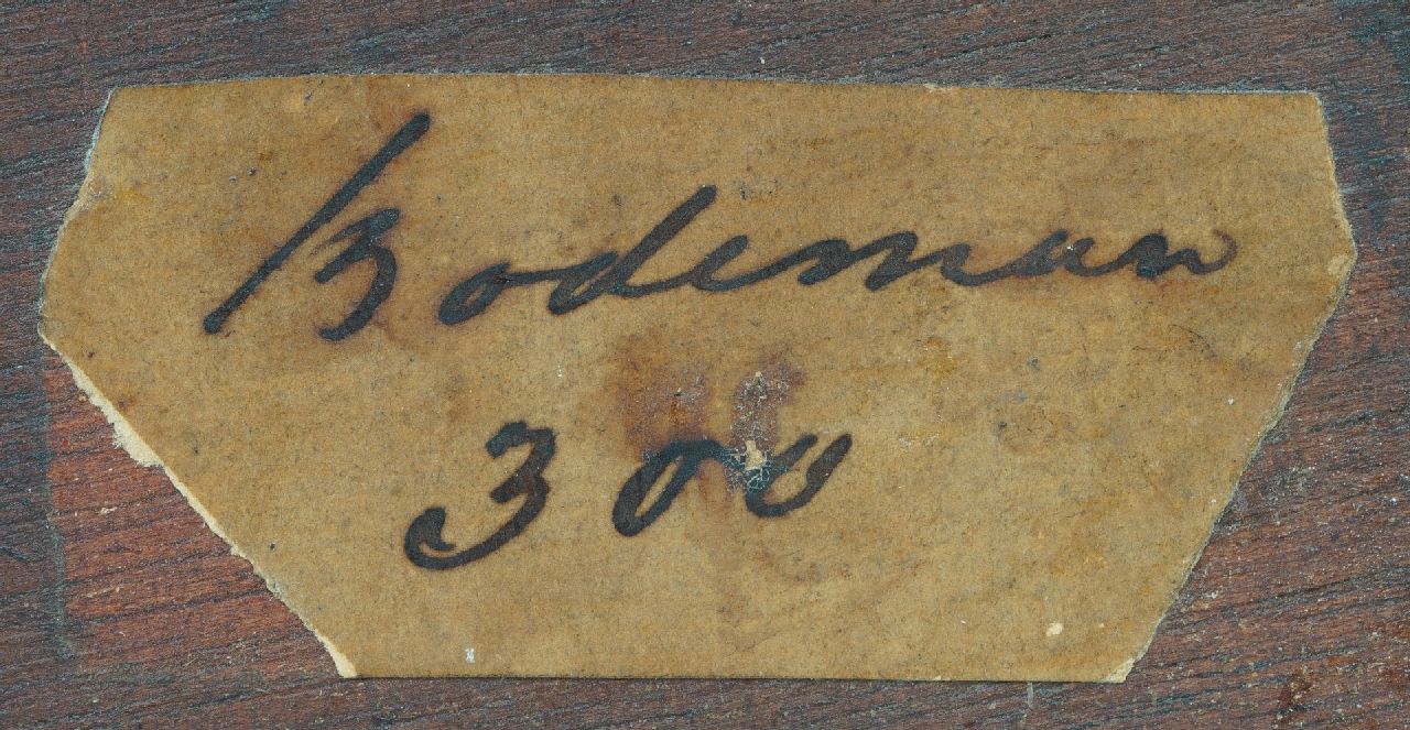 Willem Bodeman war einer der ersten Schüler von B.C.Koekkoek, ab 1826 war er bei diesem „Prinzen der Landschaftsmaler“ in der Lehre. Im Jahre 1834 wurde er „Verdienstmitglied“der Gesellschaft Arti Sacrum in Rotterdam. Bodeman malte Waldansichten und bergige Landschaften. Der belgische Maler E.J.Verboeckhoven hat oft seine Werke geschmückt.