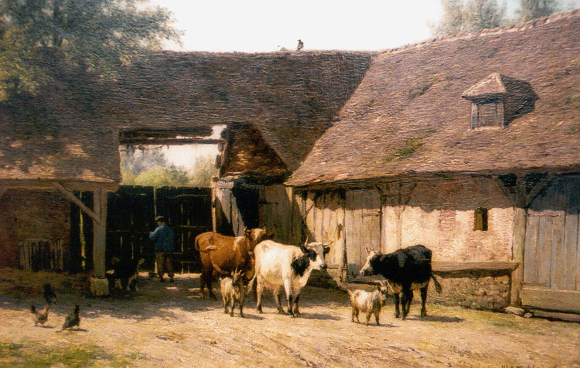 Willem Carel Nakken Kunstwerk • Gemälde • zuvor zu verkaufen A farmstead with cattle