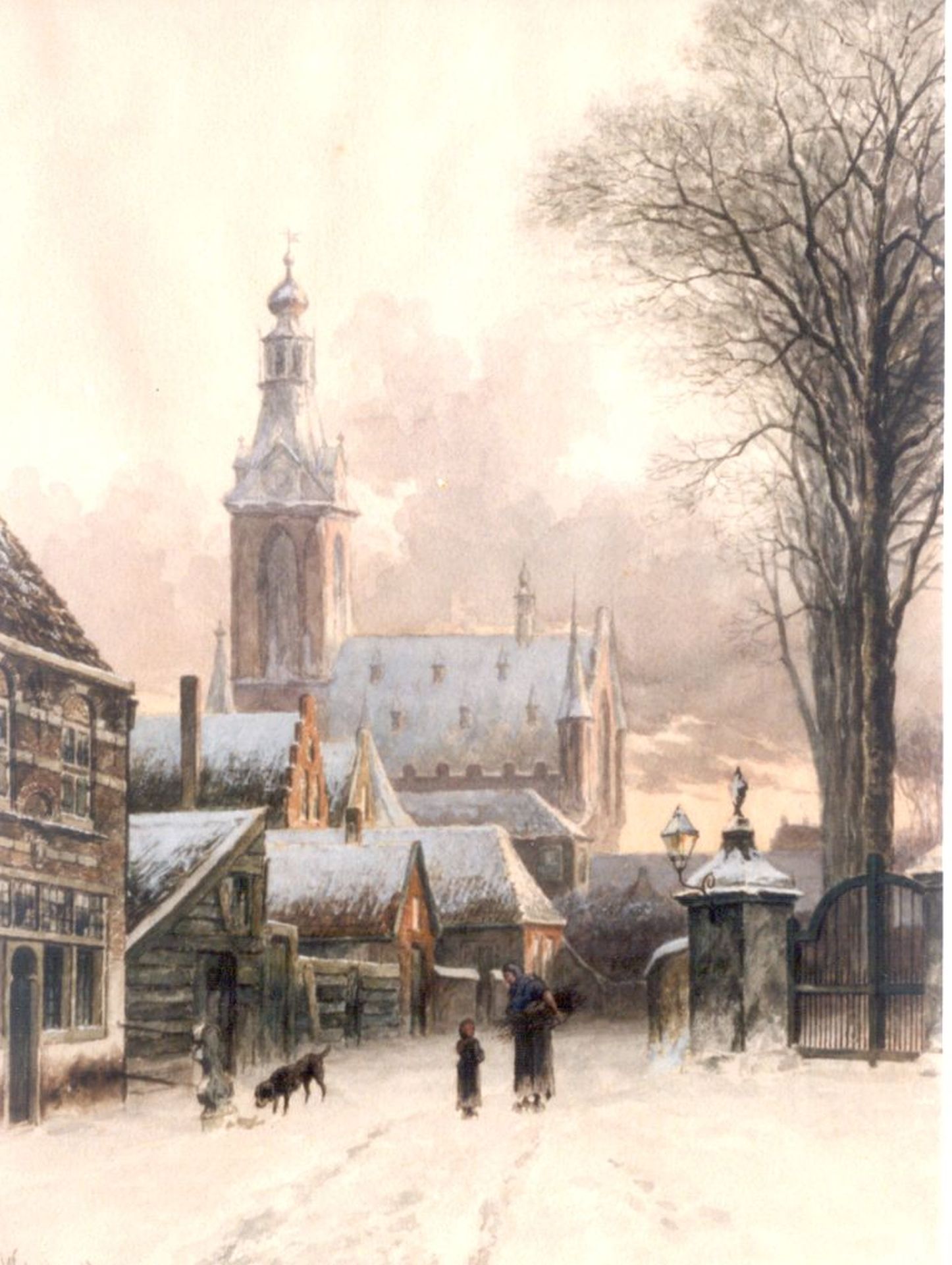 Willem de Haas Hemken Kunstwerk • Aquarell • Zeichnung • zuvor zu verkaufen A view of Heusden in winter
