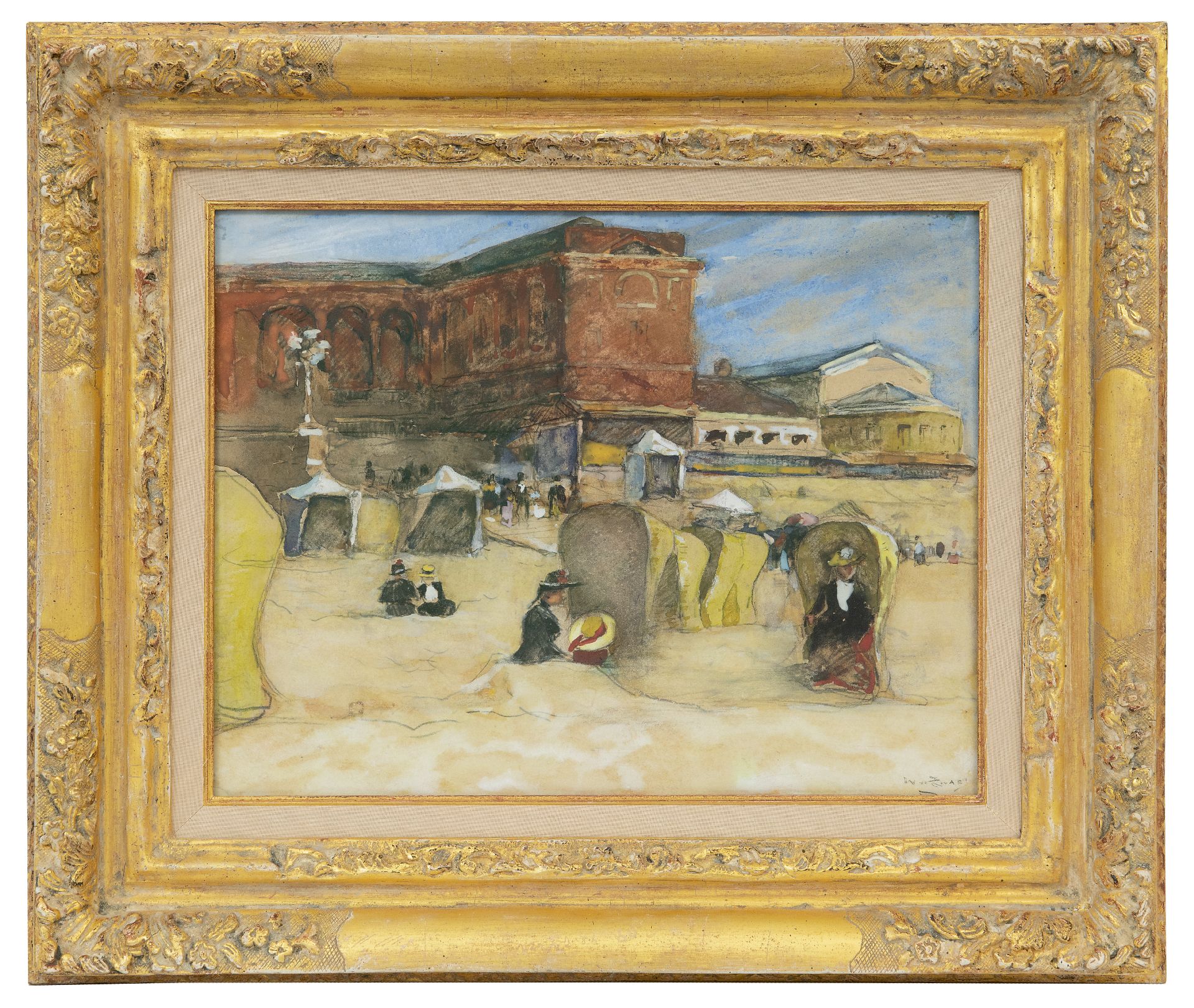 Willem de Zwart Kunstwerk • Aquarell • Zeichnung • zu verkaufen Der Strand von Scheveningen mit rechts das Palais de Danse