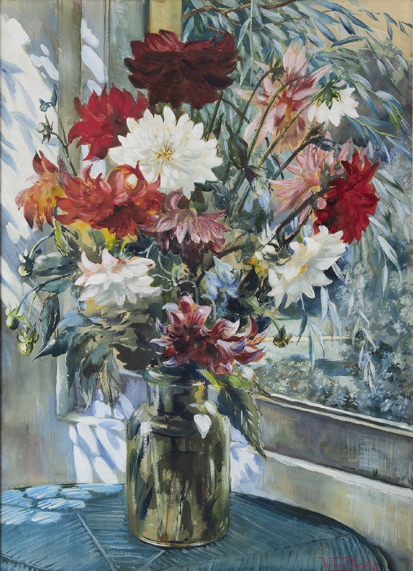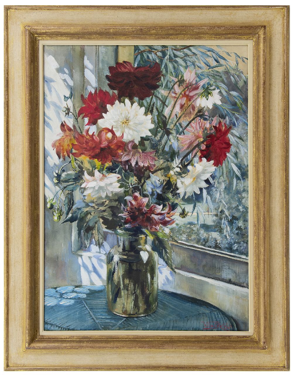 Willem Elisa Roelofs jr. Kunstwerk • Aquarell • Zeichnung • zu verkaufen Dahlien