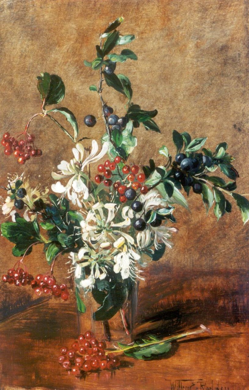 Willem Elisa Roelofs jr. Kunstwerk • Gemälde • zuvor zu verkaufen Fower still life with honeysuckle and berries