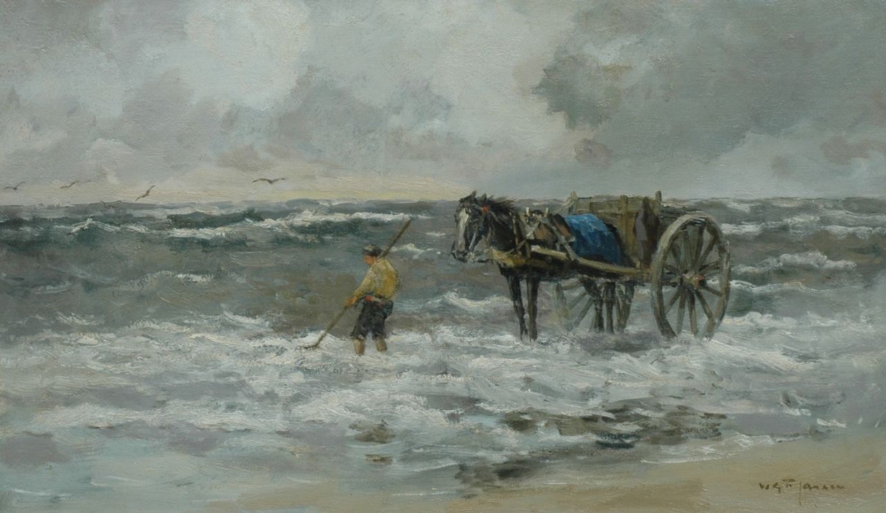 Jansen W.G.F.  | 'Willem' George Frederik Jansen, A shell-fisher, Öl auf Leinwand 59,0 x 100,2 cm, signed l.r.