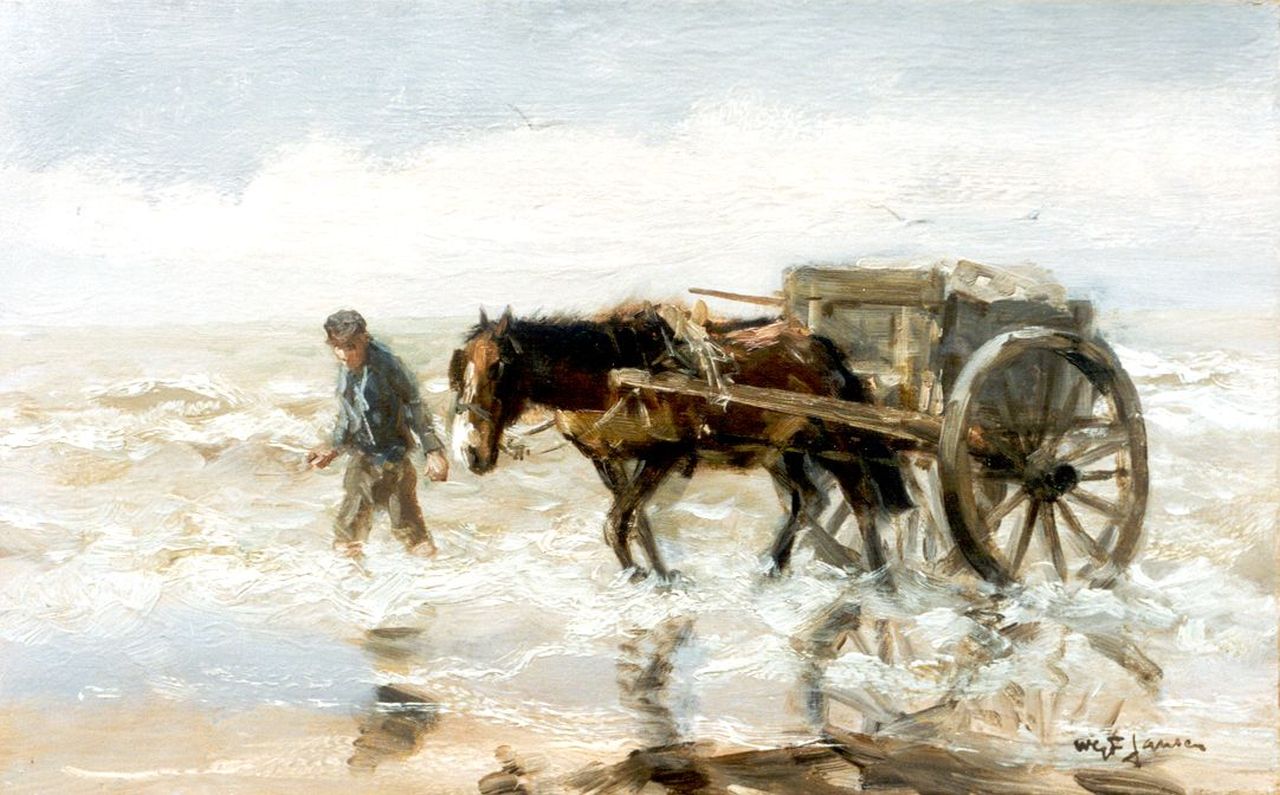 Jansen W.G.F.  | 'Willem' George Frederik Jansen, A shell-fisher, Öl auf Leinwand 25,1 x 39,9 cm, signed l.r.