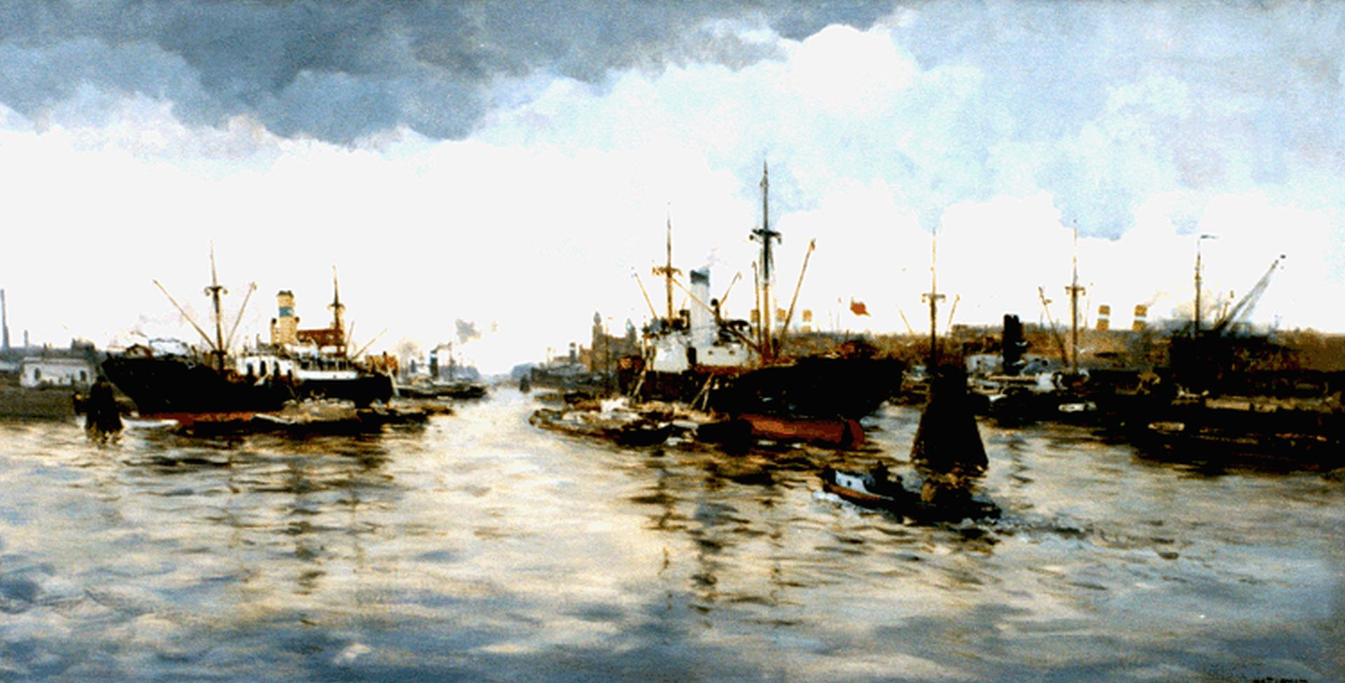 Willem George Frederik Jansen Kunstwerk • Gemälde • zuvor zu verkaufen A view of the harbour of Rotterdam