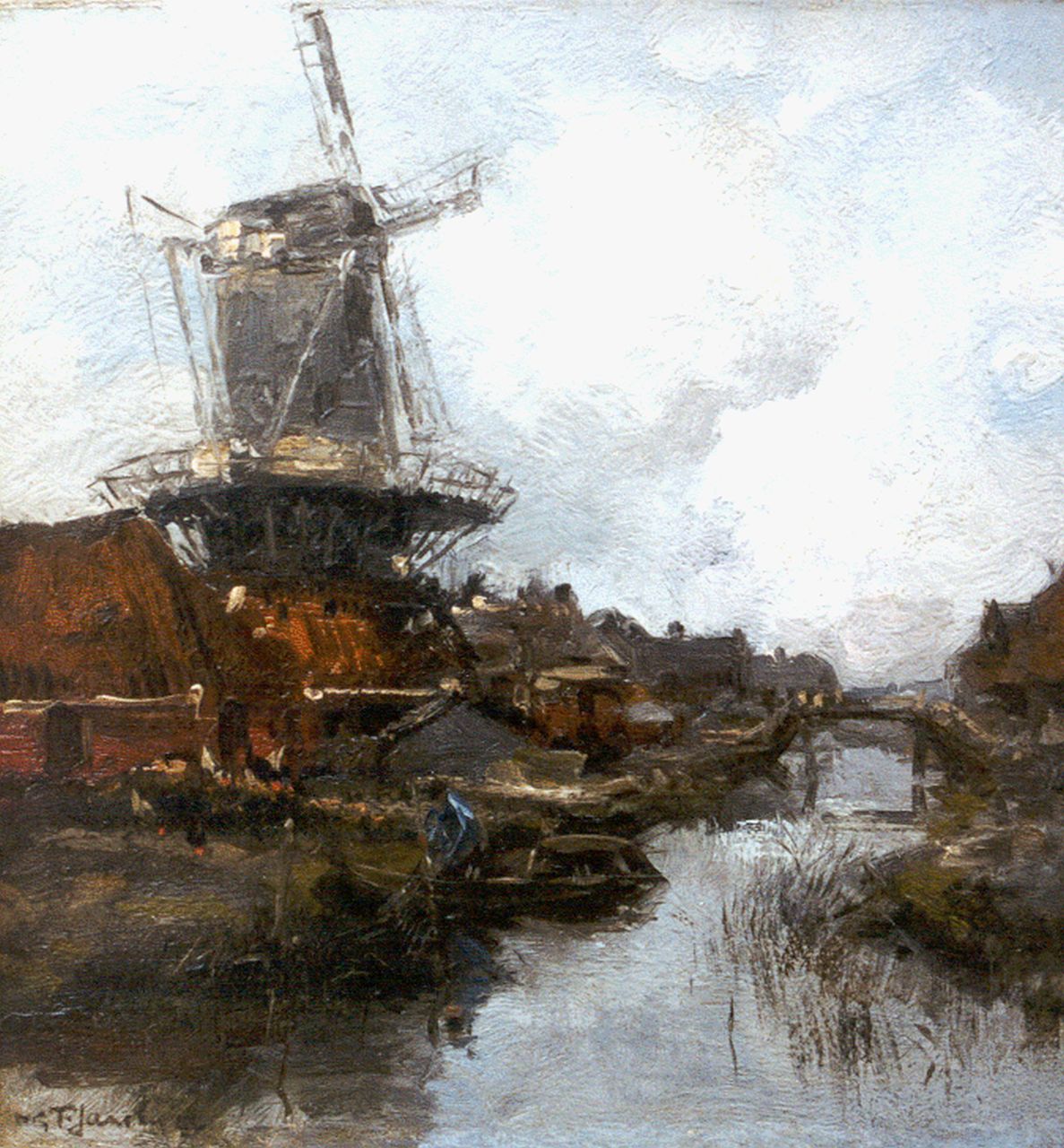 Willem George Frederik Jansen Kunstwerk • Gemälde • zuvor zu verkaufen A windmill in a river landscape