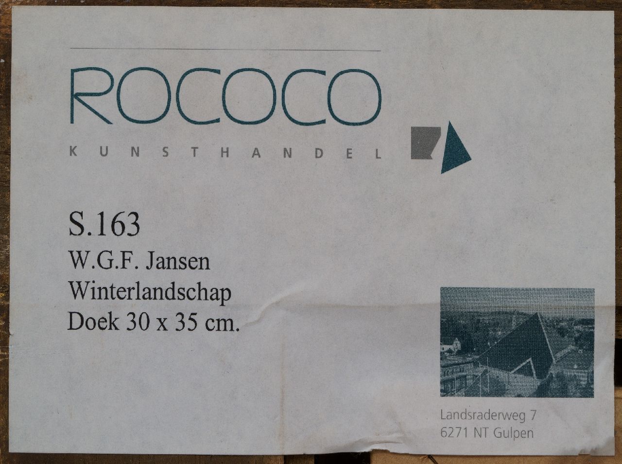 Herkunft: Kunsthandel Rococo, Gulpen; part. bezit Nederland.