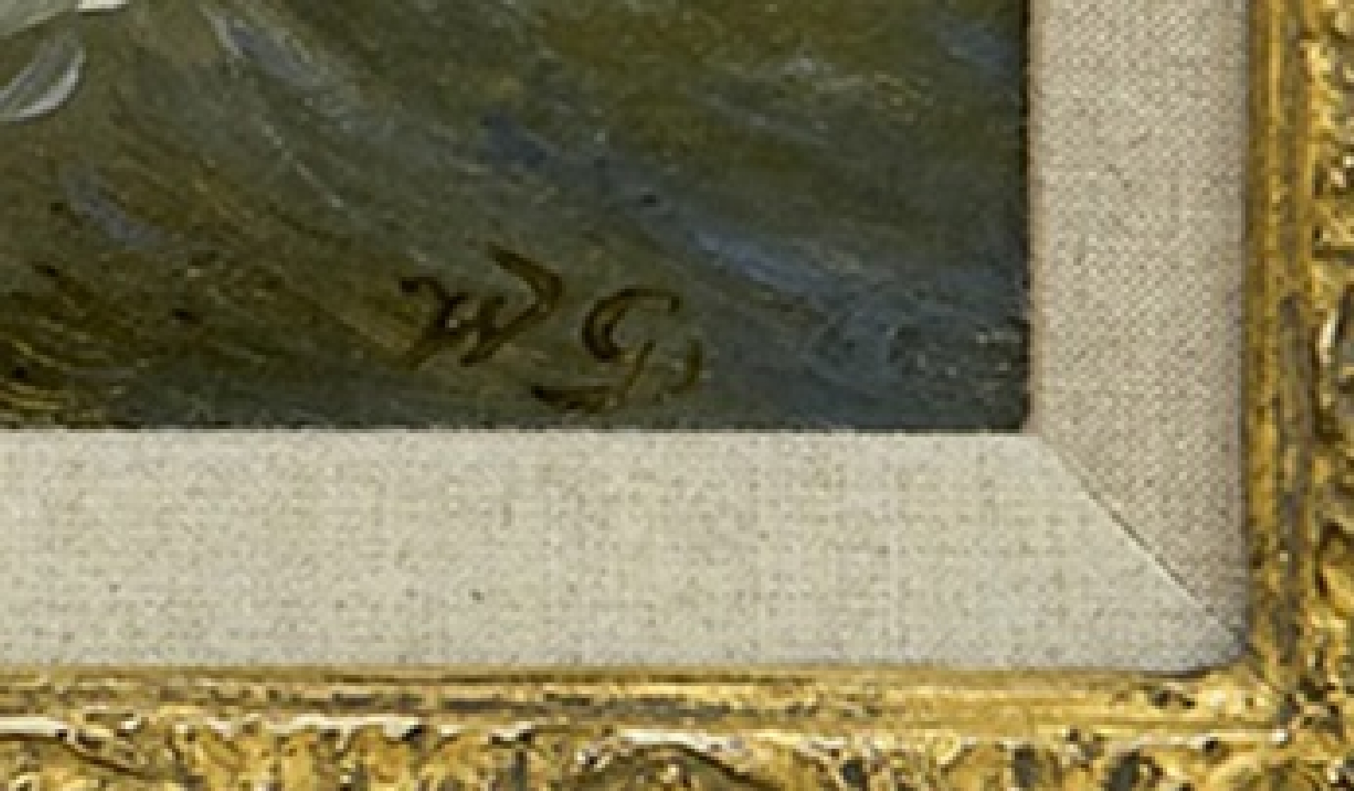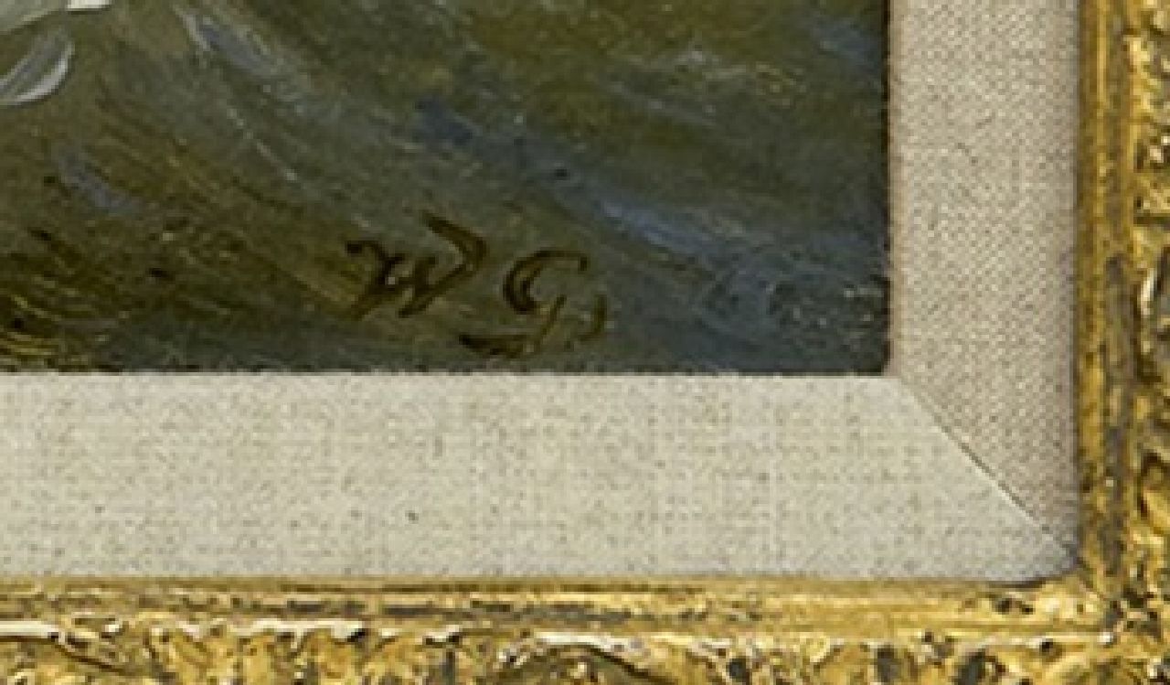 Öl auf Holz 29,9 x 50,1 cm, Unterzeichnet r.u. mit Initialen und verso mit vollem Namen und Im Verso datiert 1878