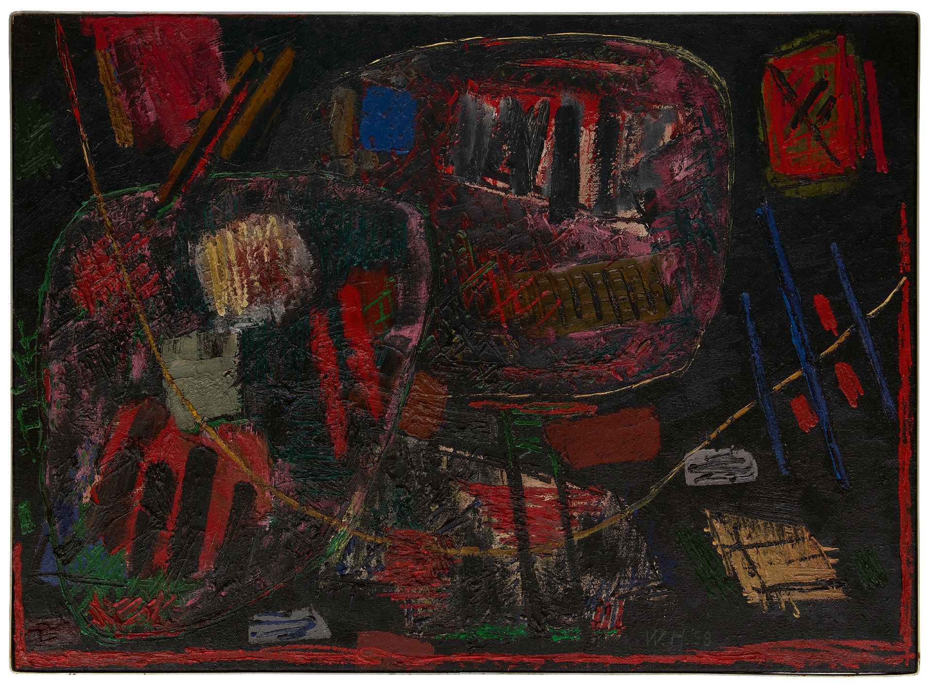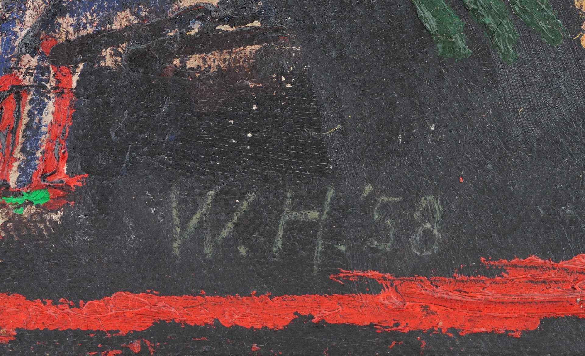 Öl auf Jute 95,1 x 130,0 cm, Unterzeichnet u.r. mit Initialen und datiert '58