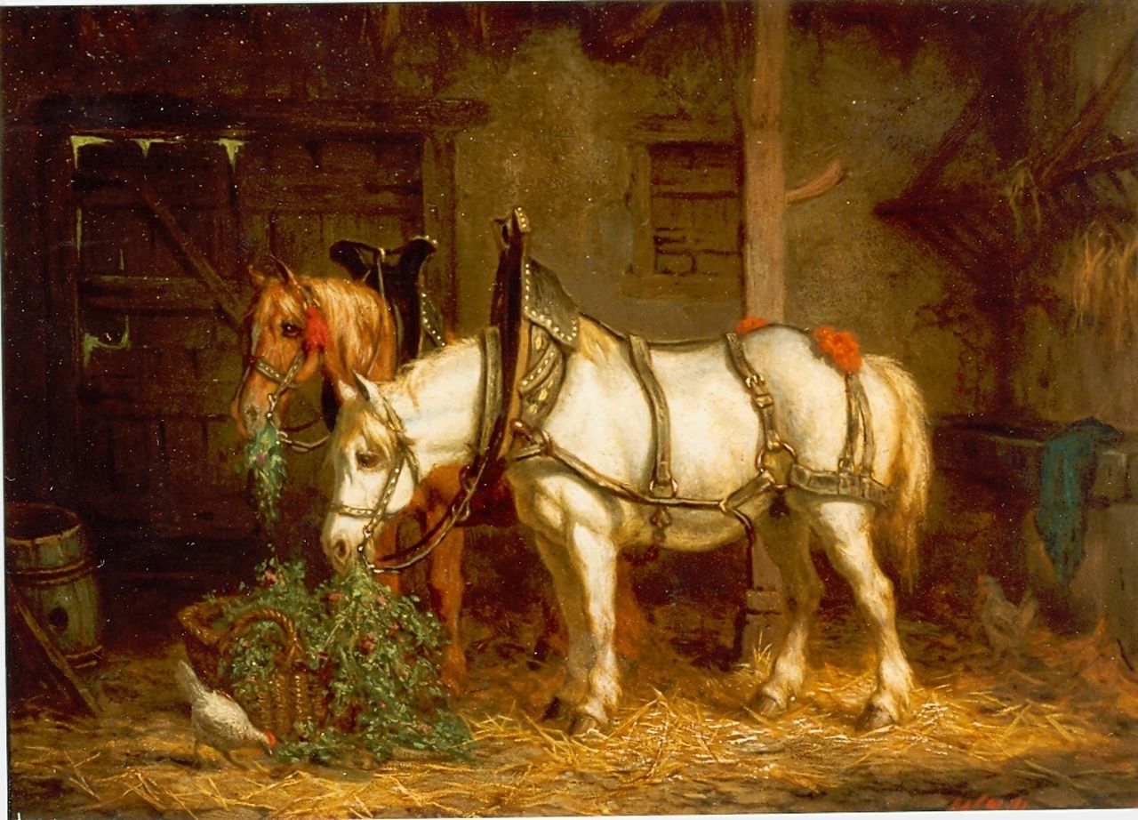 Willem Johan Boogaard Kunstwerk • Gemälde • zuvor zu verkaufen A stable interior with horses