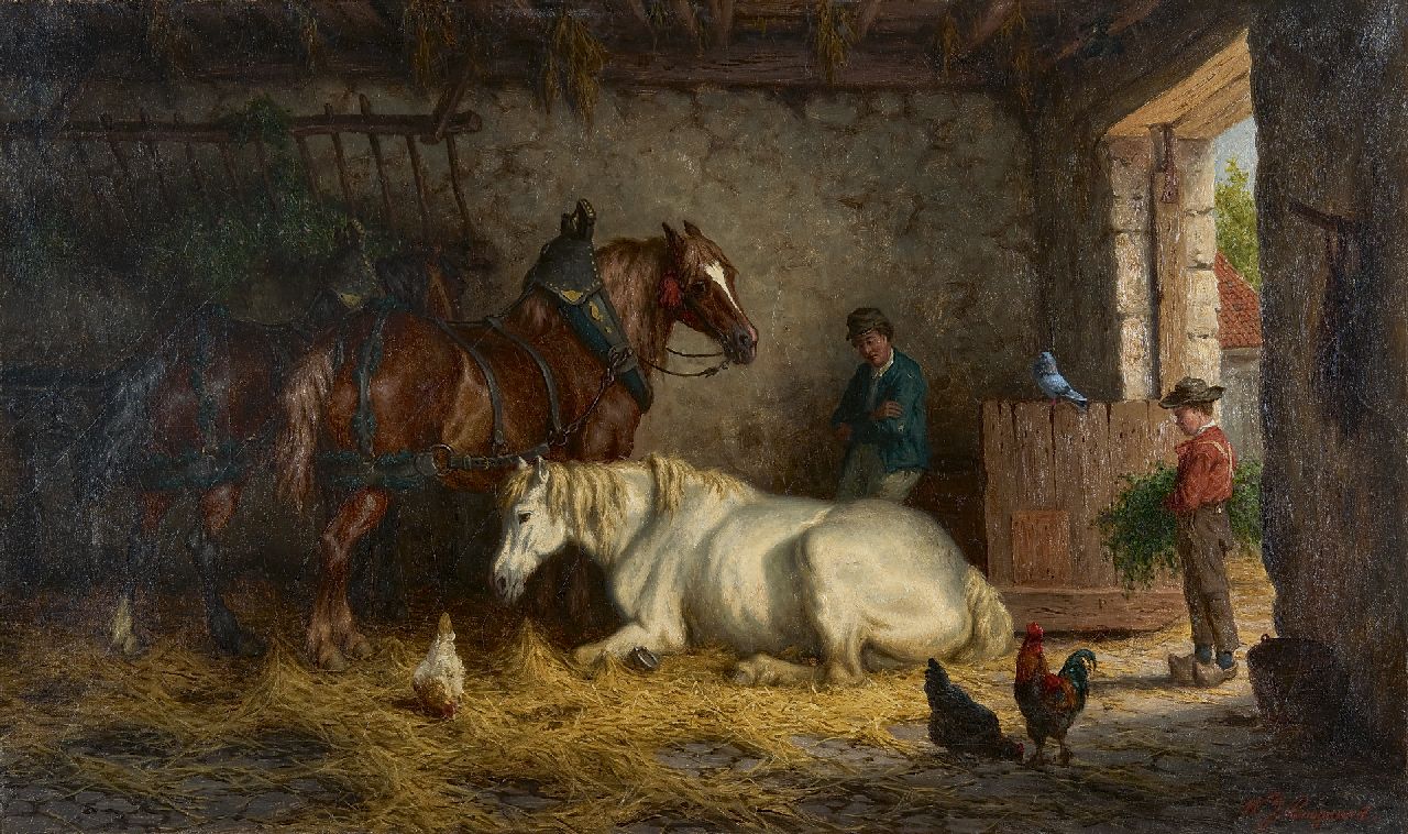 Willem Johan Boogaard Kunstwerk • Gemälde • zuvor zu verkaufen A stable interior with three horses