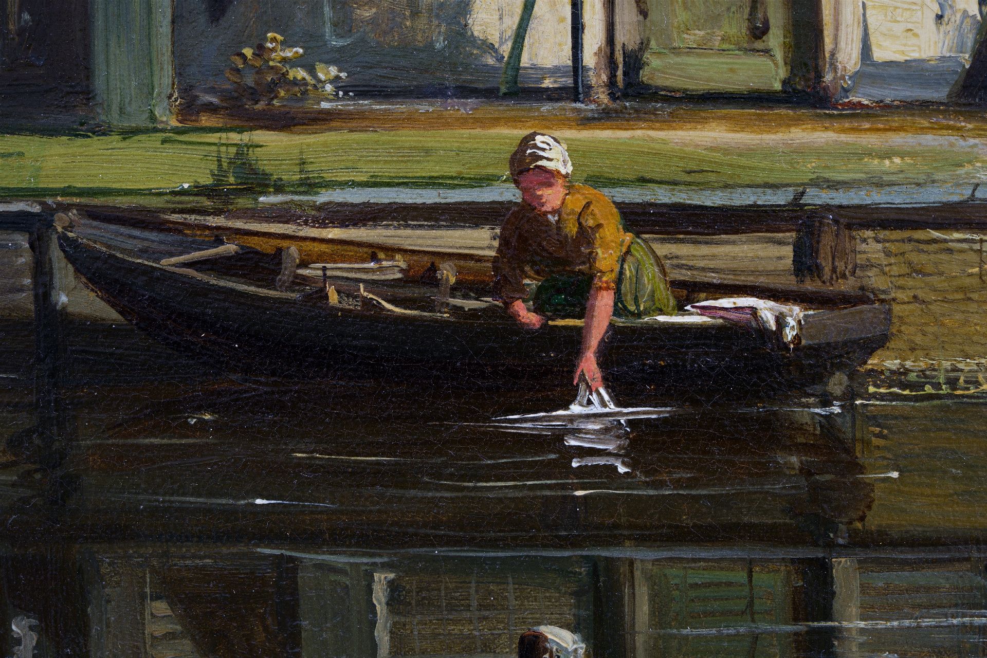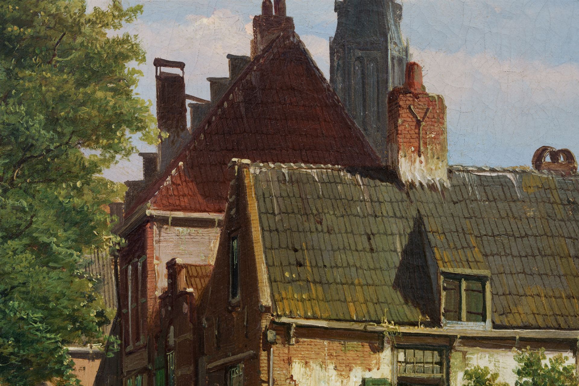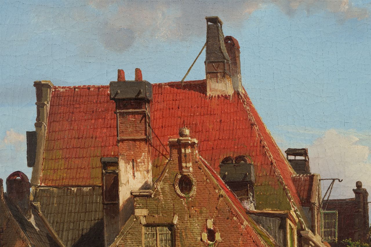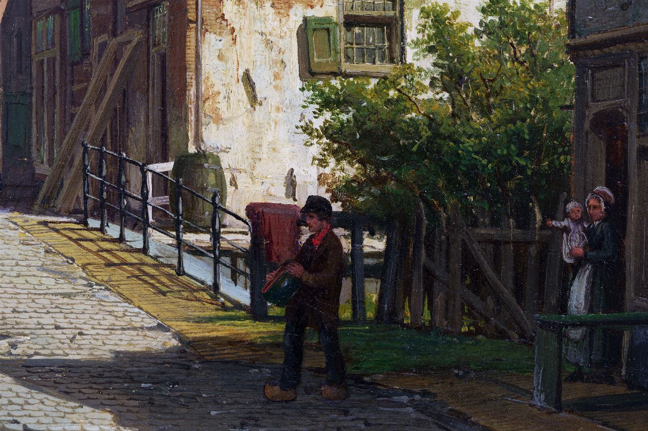 Willem Koekkoek Kunstwerk • Gemälde • zuvor zu verkaufen Holländisches Stadtbild mit einer Brücke über einen Kanal